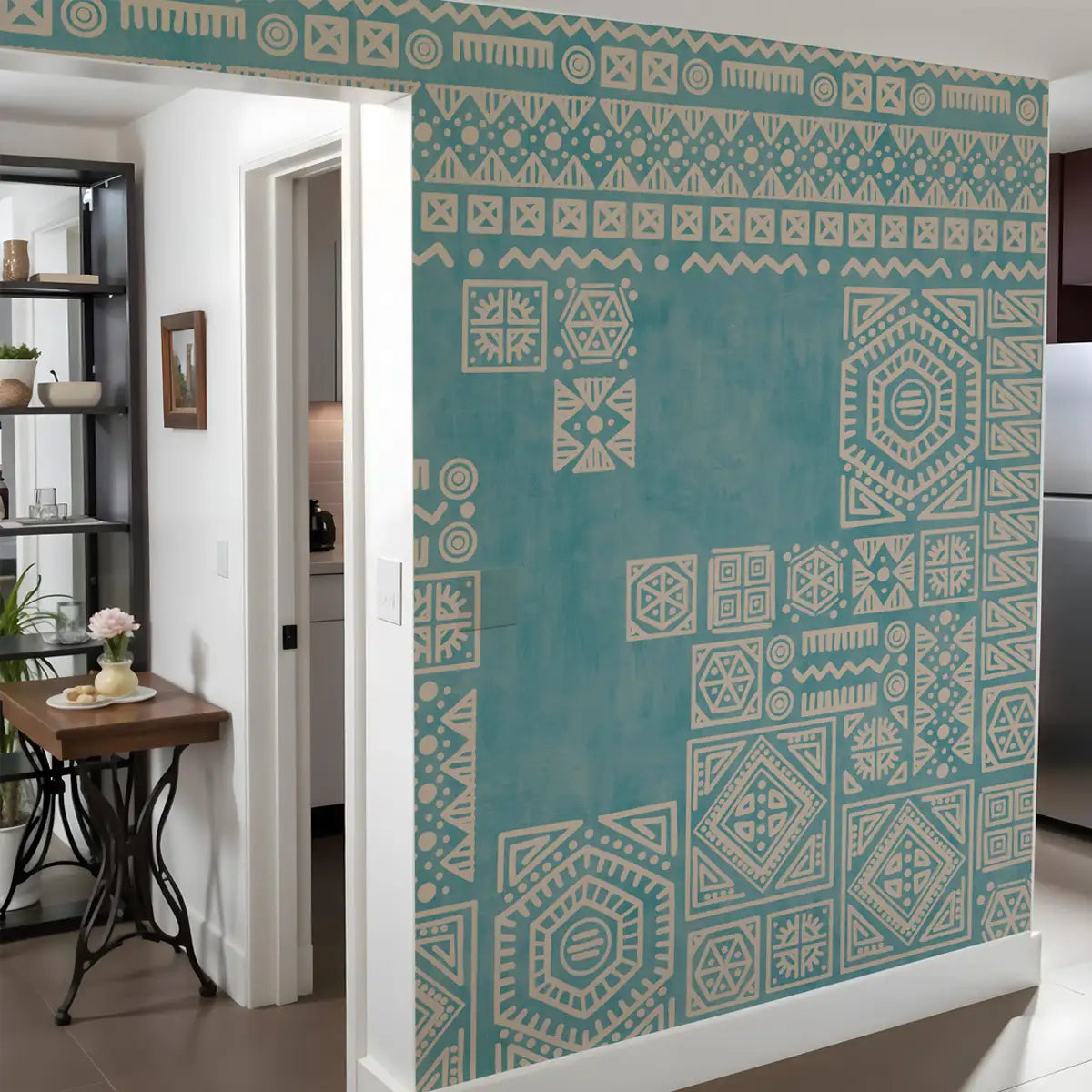 Formerly Tribal Teal Abstract Customised Wallpaper for Rooms