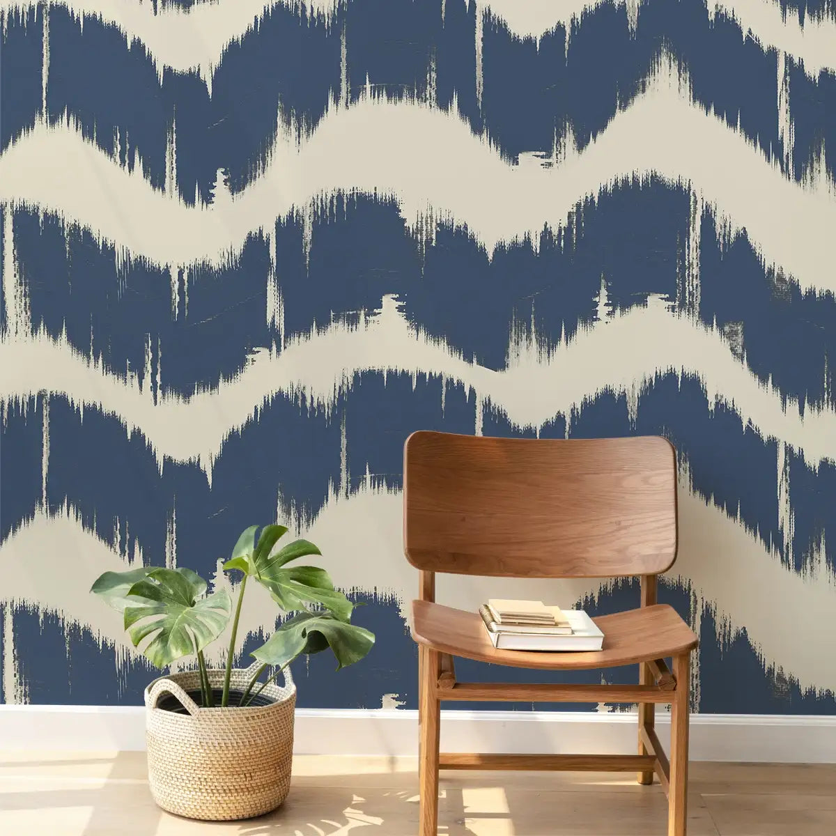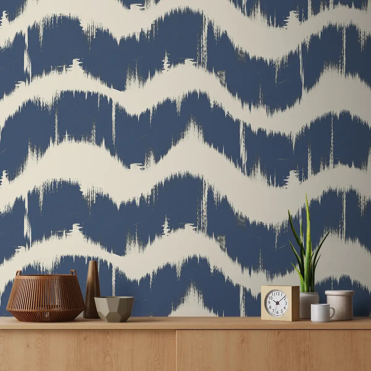 Indigo Waves Blue Modern Abstract Wallpaper for Walls