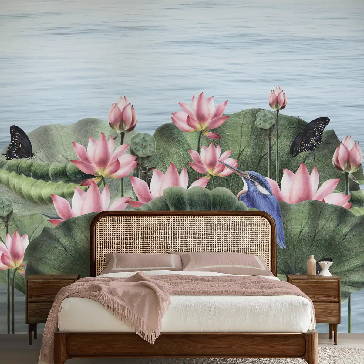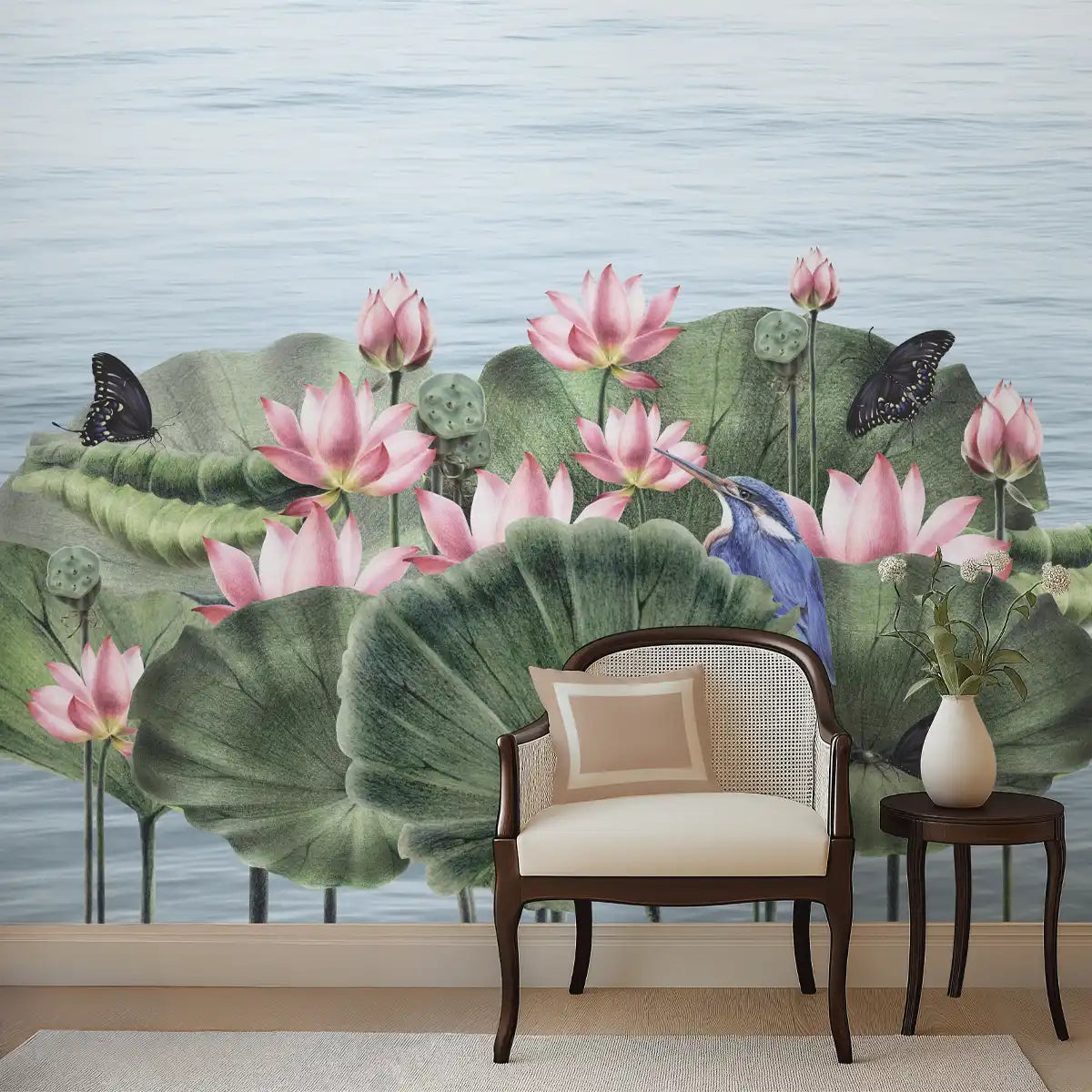 Padma, A Beautiful Lotuses Wallpaper for Walls | Custom made | Clear & vibrant prints | Easy to maintain | Lifencolors | Made in India