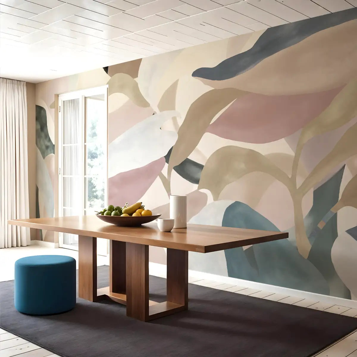 Verdant Echo Dusty Olive Botanical Abstract Customised Wallpaper for Rooms