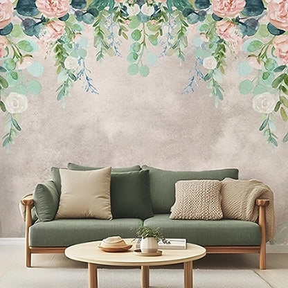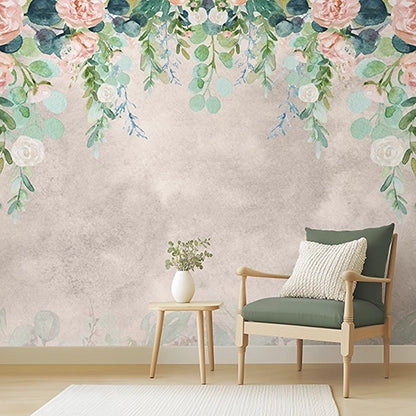 Water Color Look Hanging Floral Wallpaper for Bedrooms Pink. Make your home beautiful with our stunning floral wallpaper | Custom made | Clear & vibrant prints | Easy to maintain | Lifencolors | Made in India