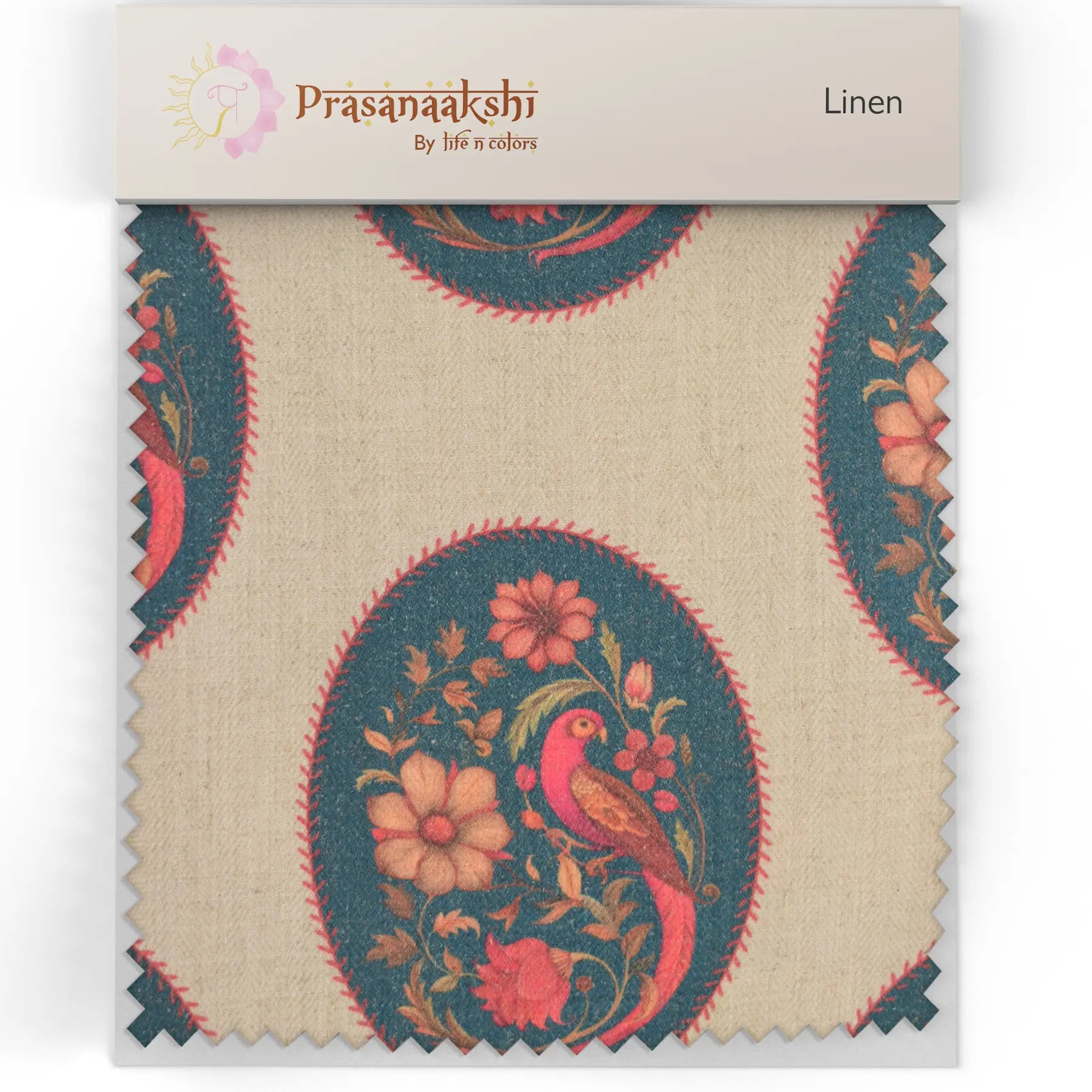 Product Name: Vintage Blossom Floral Curtain Linen Fabric Blue and Beige Color