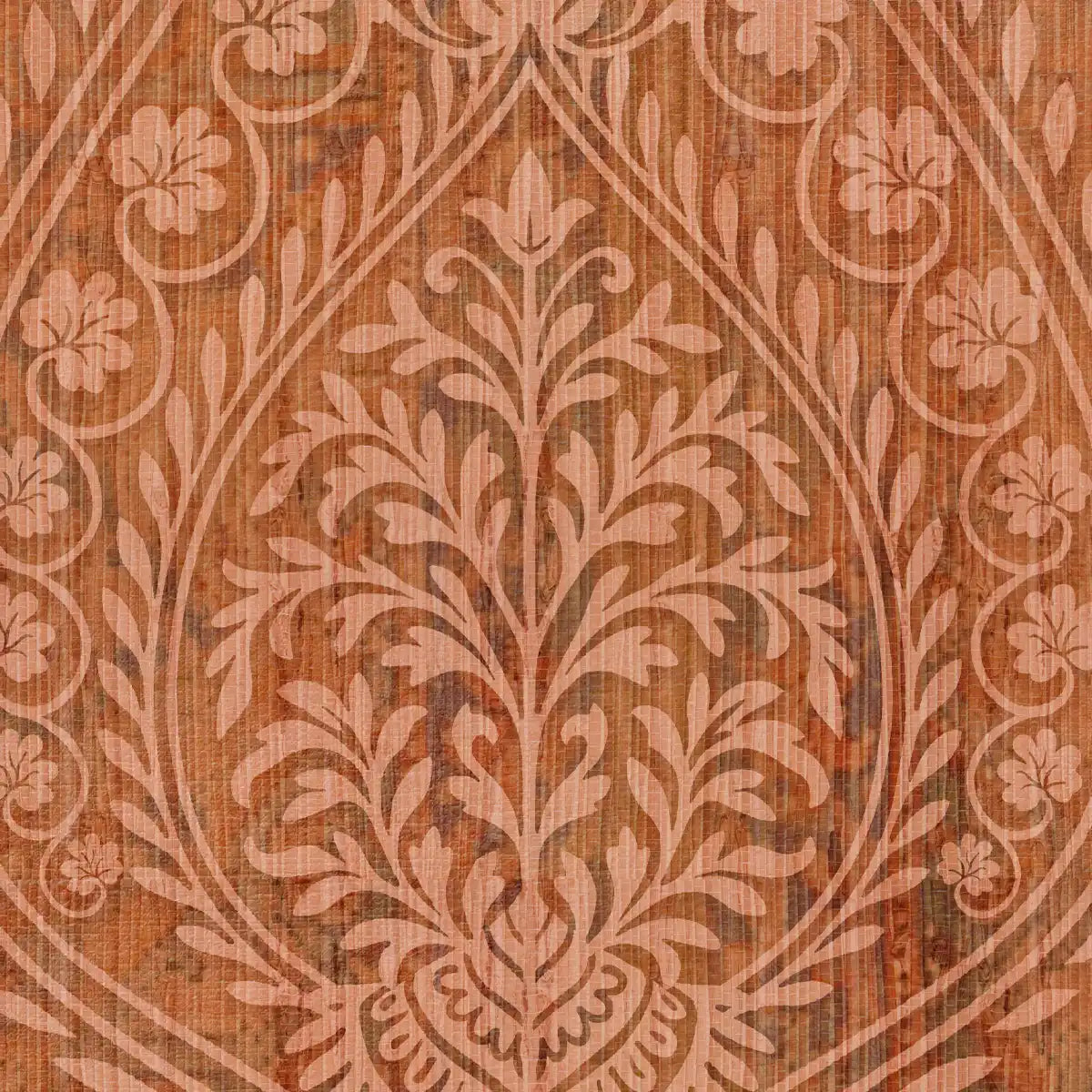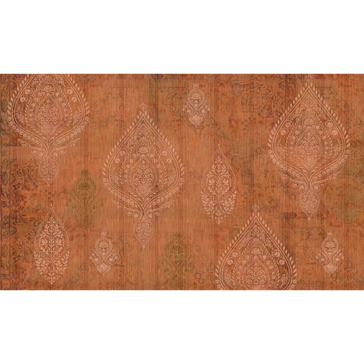 Drenched in the warmth of spiced terracotta and burnished gold, this design captures the soul of an antique textile. The intricate, paisley-inspired motifs float over a distressed, layered background that mimics the woven texture of a treasured heirloom rug, blurring the line between wall covering and fabric. It adds a layer of opulent depth to the walls, transforming a flat surface into a rich visual landscape of intricate weaving.