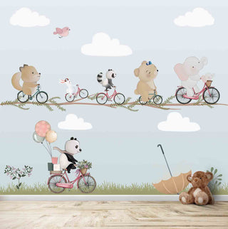 Animals with Balloon on Rope, Kids Room Wallpaper, Customised