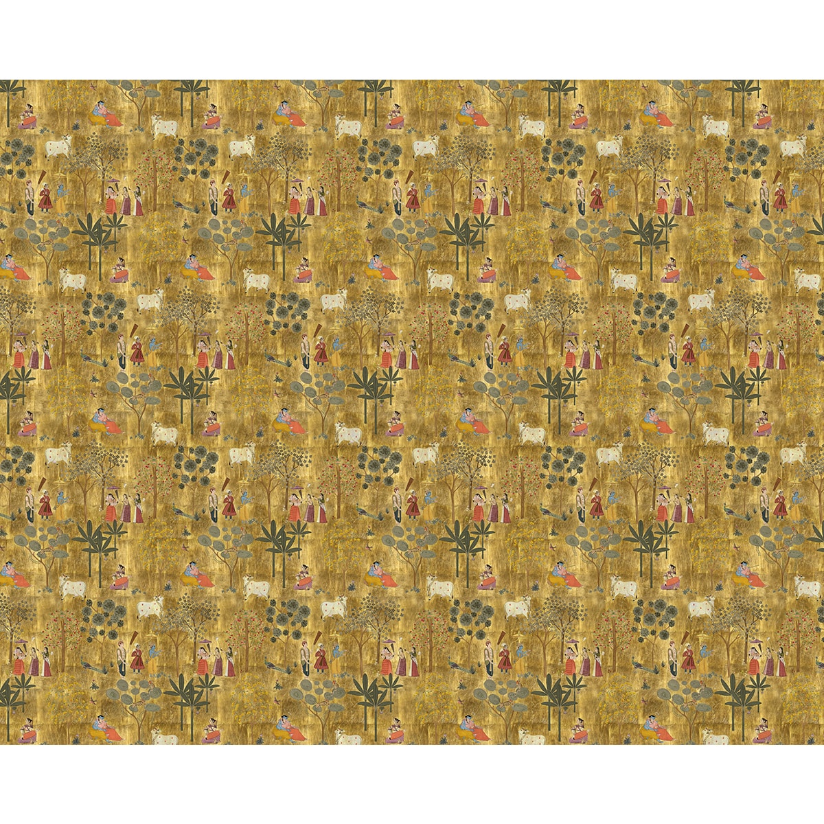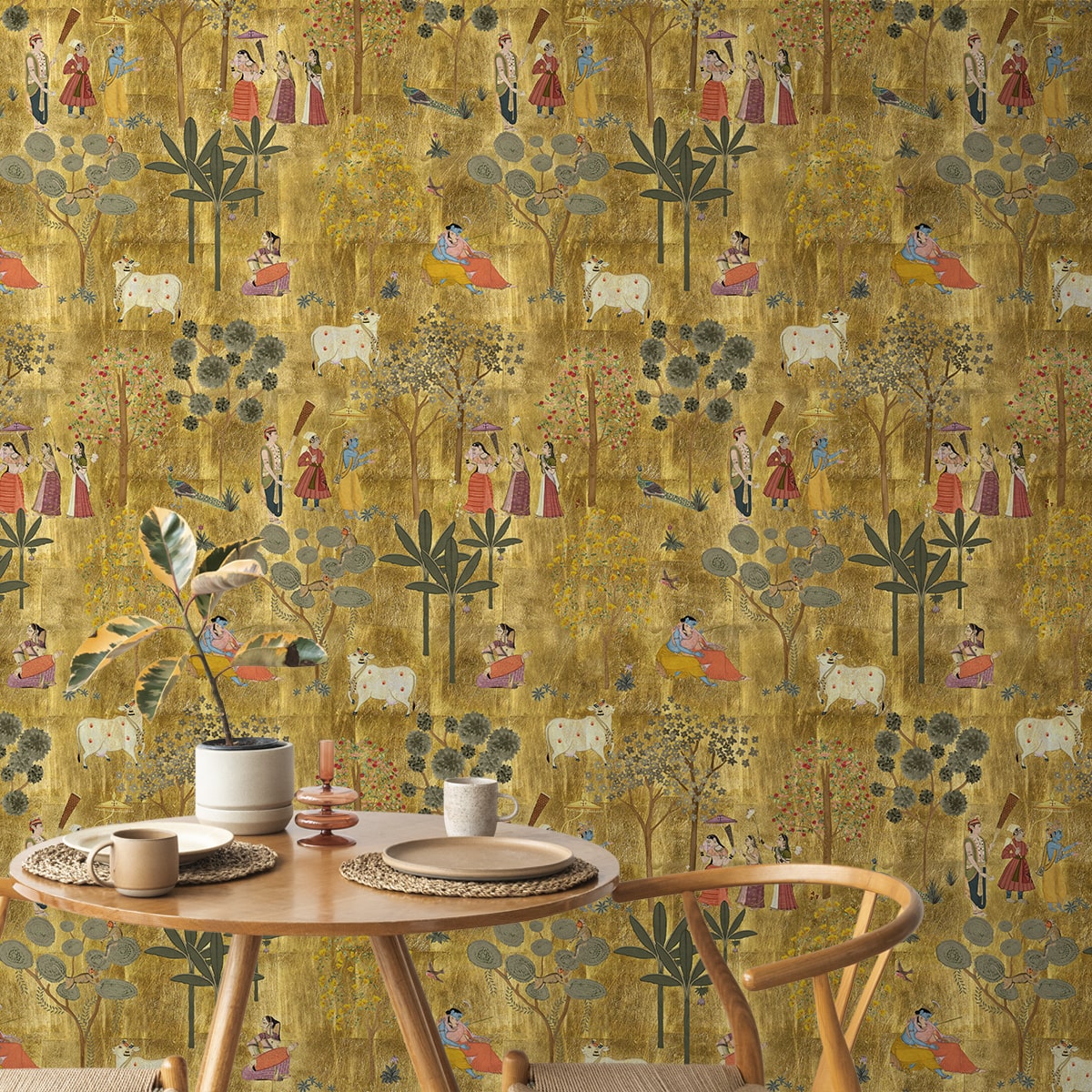 Pichwai Style Yellow Wallpaper for Lobby and Temple Walls