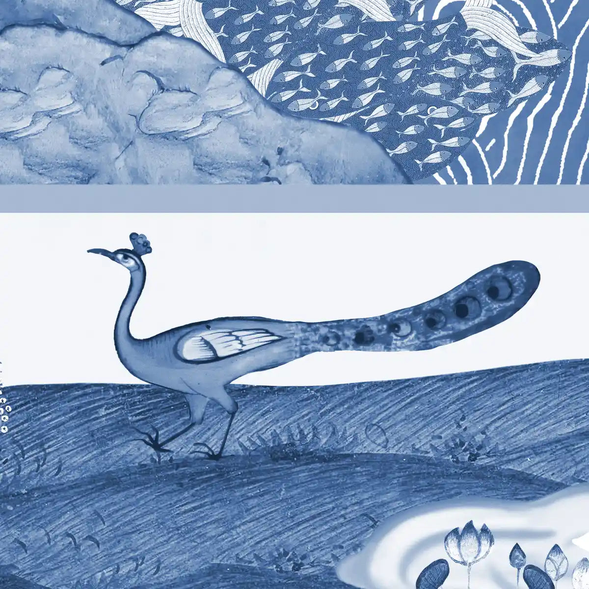 Bagiya, Peacock Chinoiserie Wallpaper in Indian Style, Light Blue, Customised