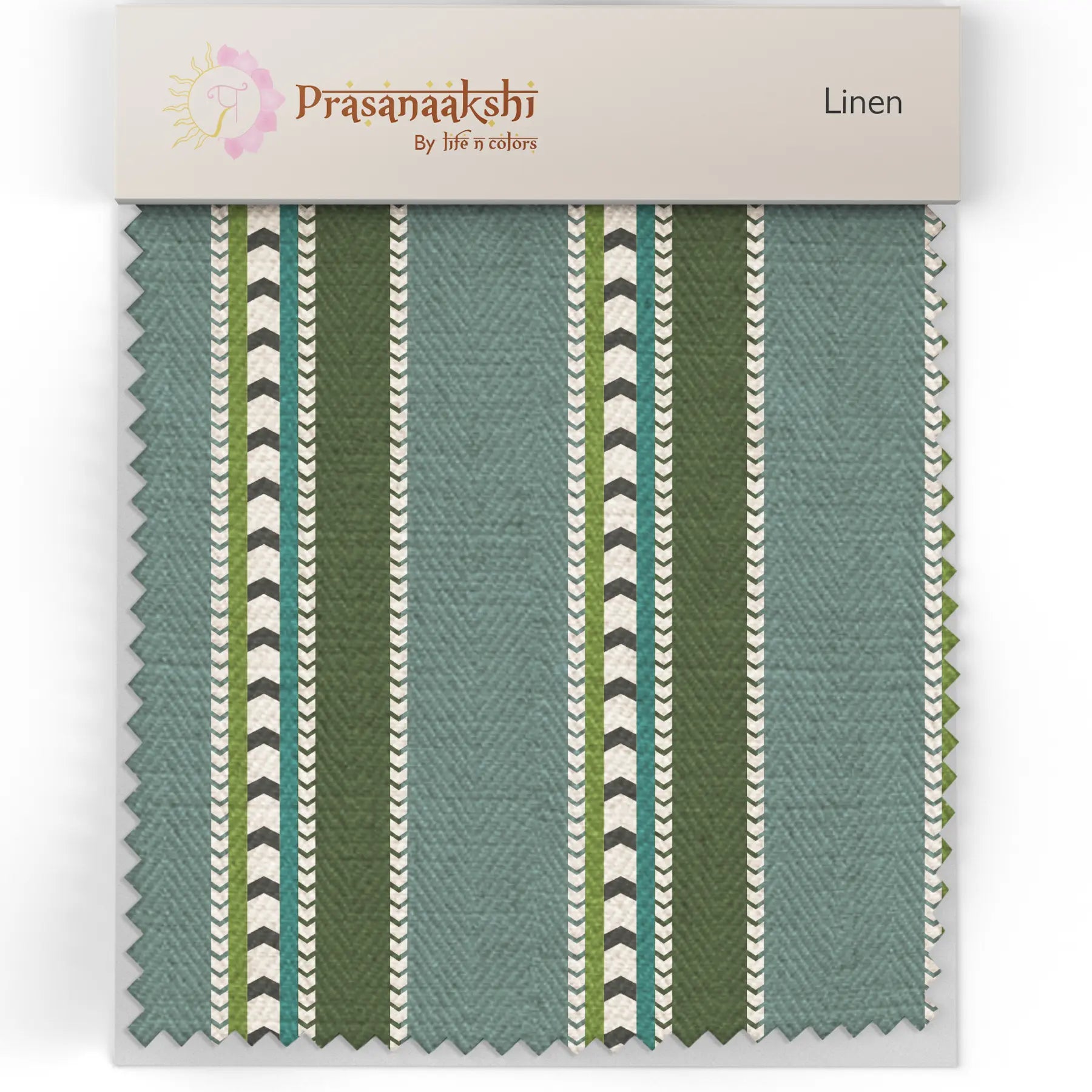Regal Stripe Upholstery Fabric combines teal blue and deep green with fine chevron accents for a refined striped design. Ideal for sofa fabric, chair fabric, or other upholstery projects, this linen fabric brings a bold yet versatile look to interiors.