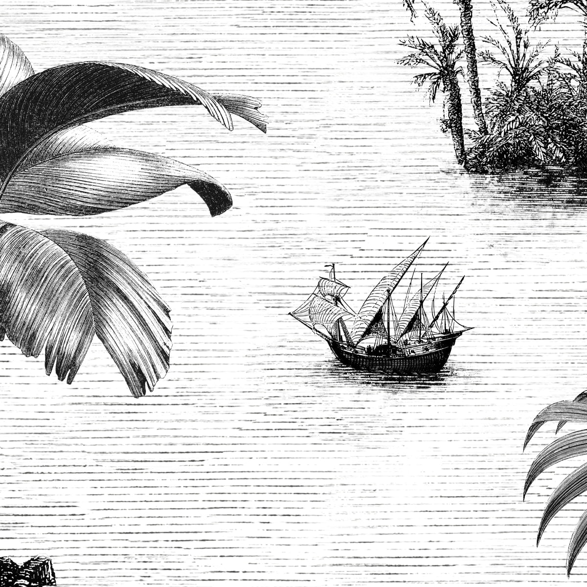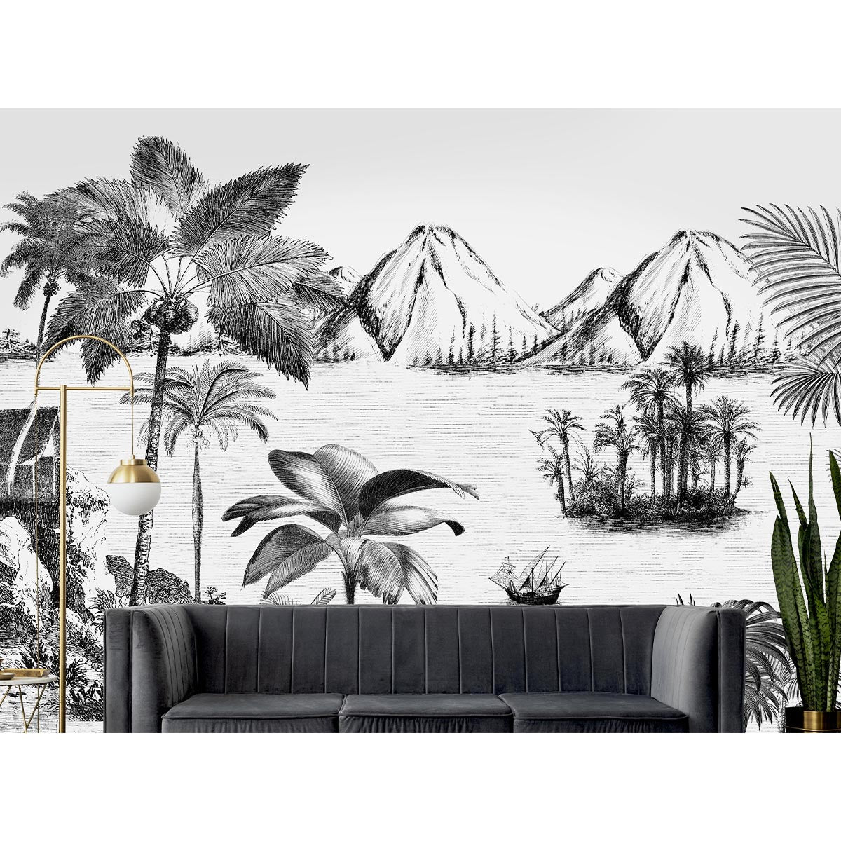 Introducing our black and white jungle theme wallpaper! This design features tropical trees set against a black and white background, creating a bold and eye-catching look. Perfect for making a statement in any room, this wallpaper is sure to turn heads.