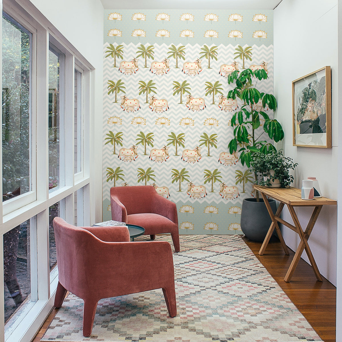 Kovalam Tropical Wallpaper for Rooms, Green, Customised