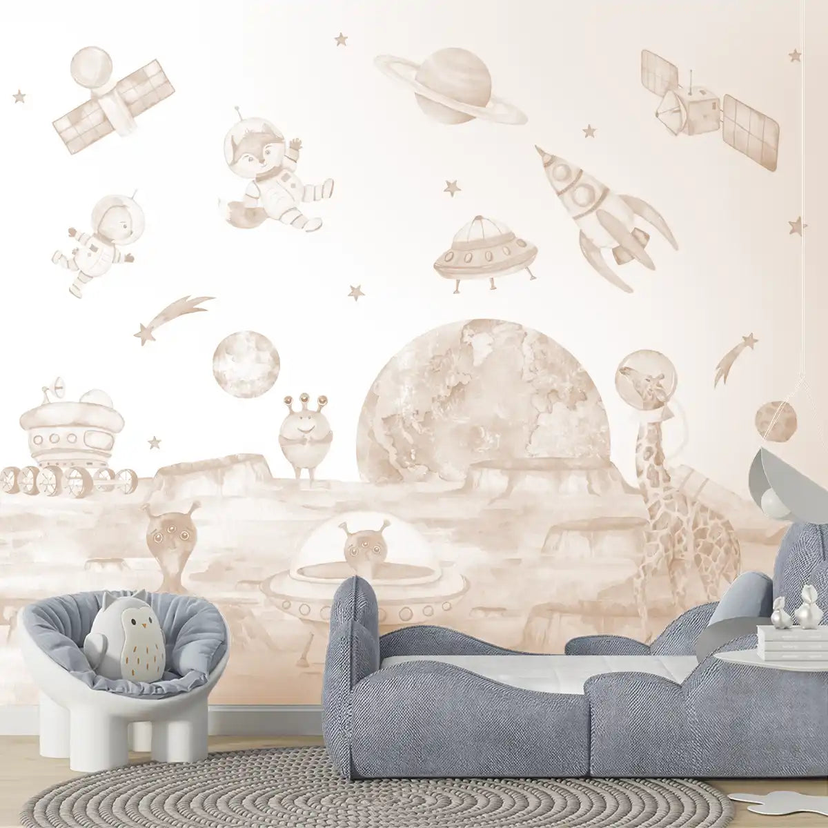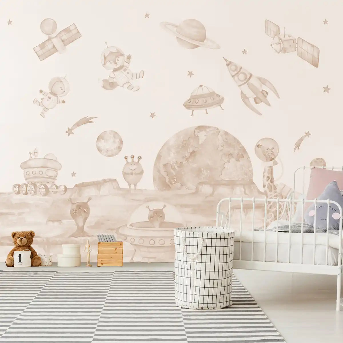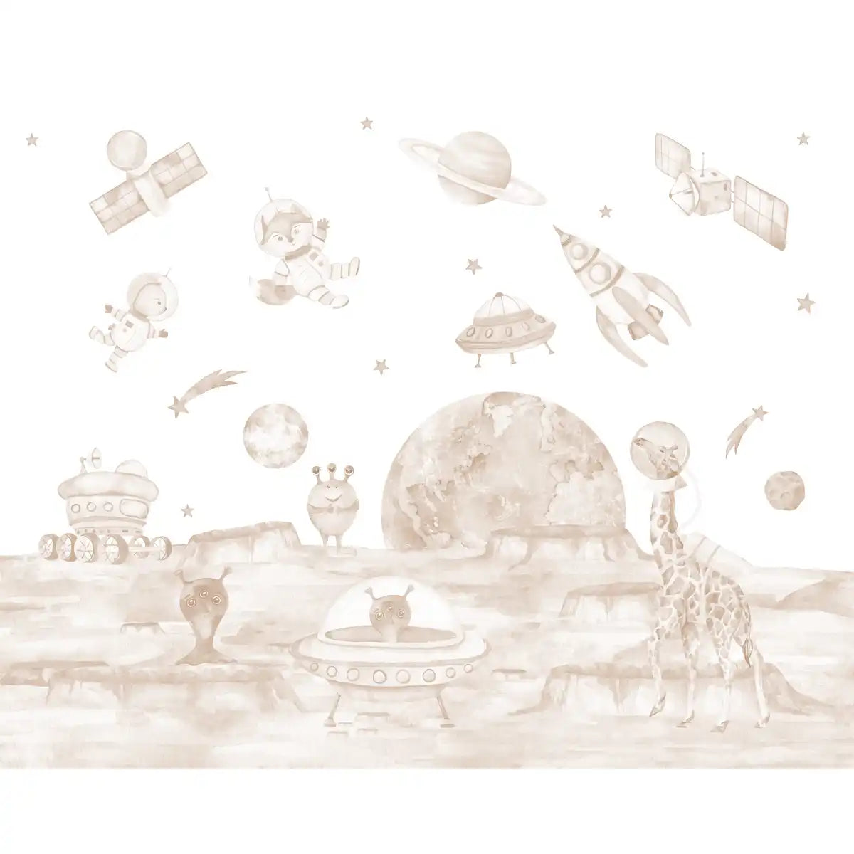 Lets go on a moon walk, Cute kids room wallpaper, Sepia | Custom made | Clear & vibrant prints | Easy to maintain | Life n Colors | Made in India