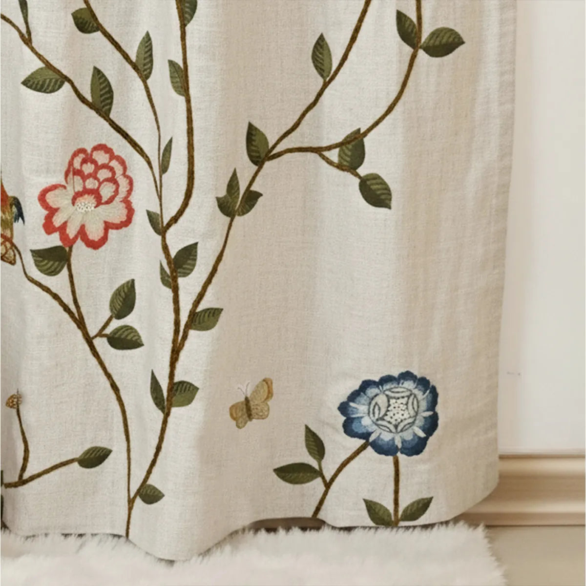 The Anar Bloom Curtain brings life to interiors with its vibrant pomegranate and floral motifs, accented by birds and butterflies. The detailed artwork on a neutral base makes it suitable for living rooms, bedrooms, or creative spaces where nature-inspired décor is desired.