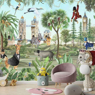 Cute Jungle Animals Wallpaper for Kids Room Nursery, Customised, Blue