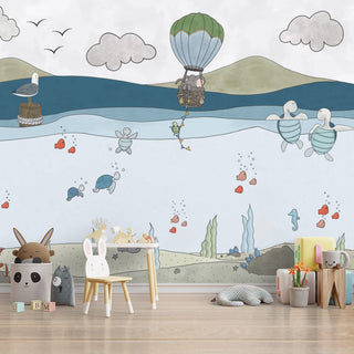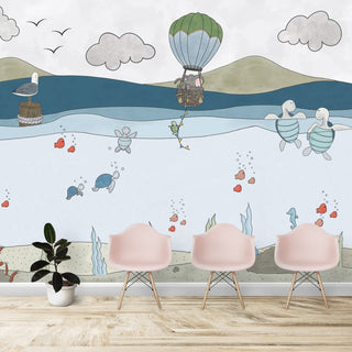 Hot Air Balloons with Animals Wallpaper for Kids Room Walls, Kids Wall Designs