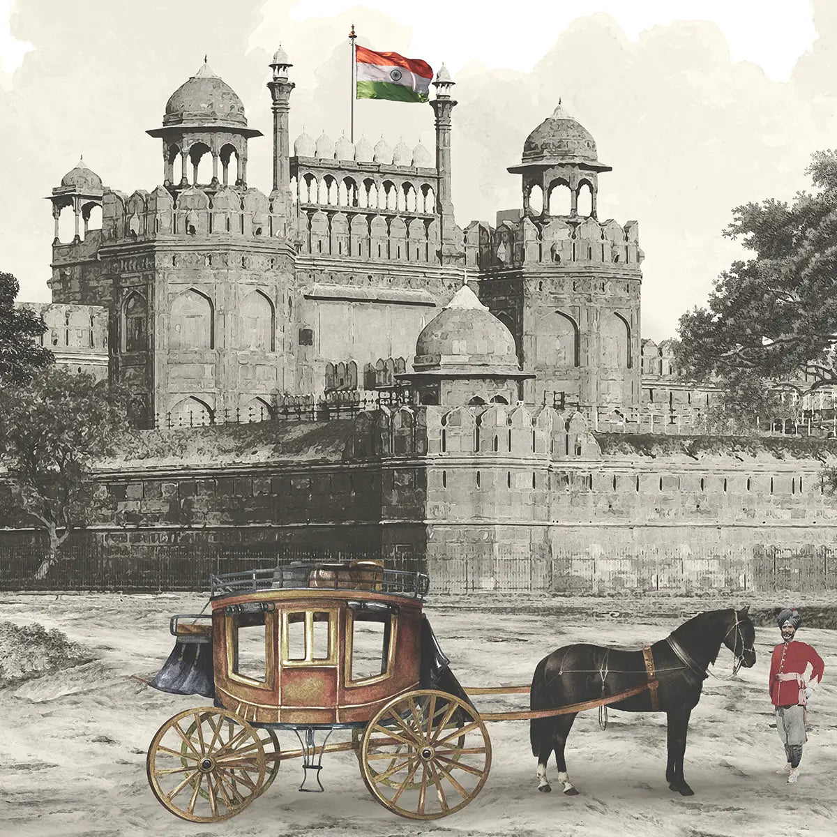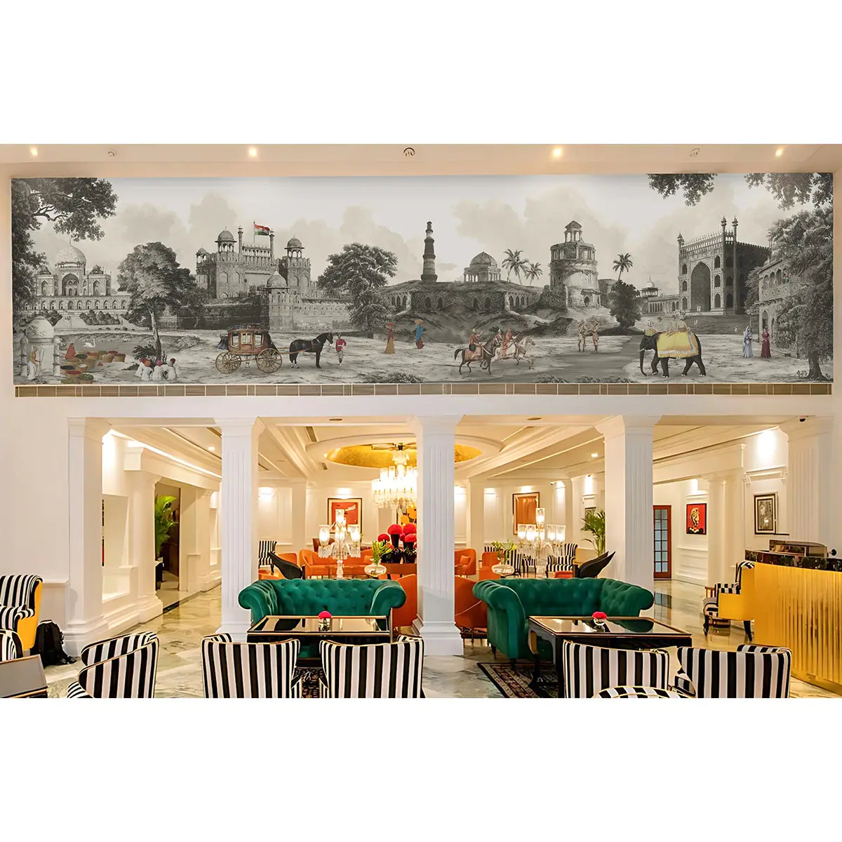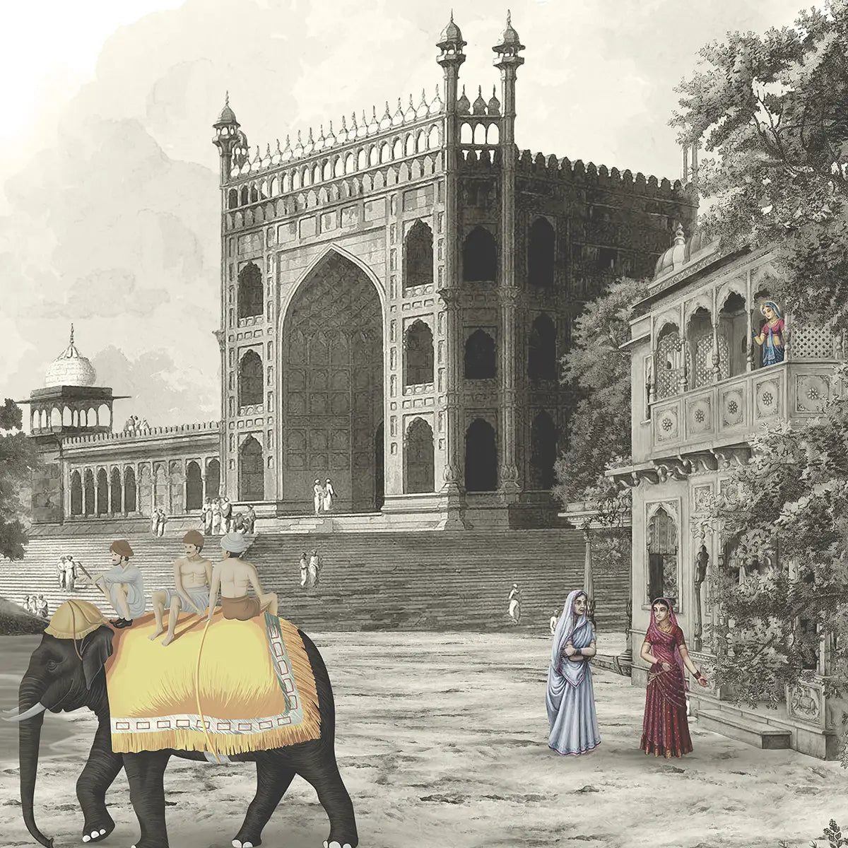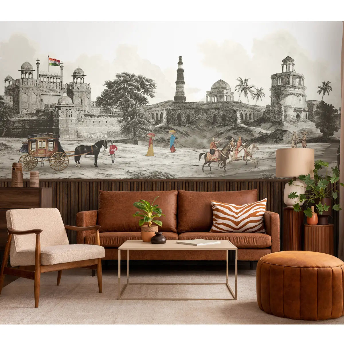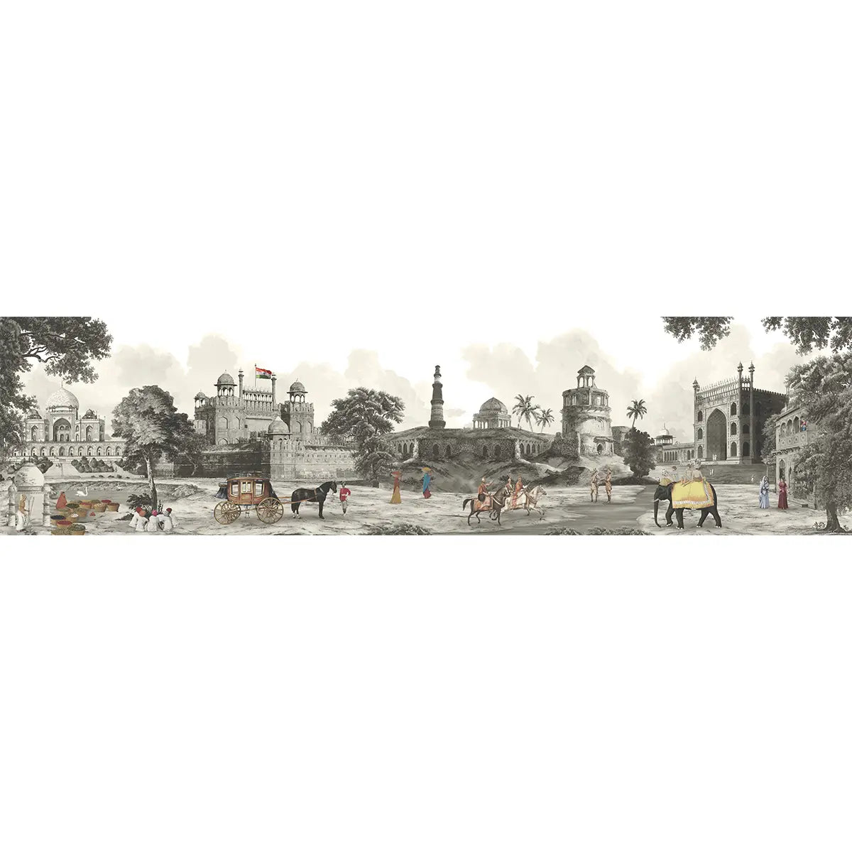 Step into the heart of old Delhi with our Dilli Chowk wallpaper. This vintage-inspired design, part of the Suneherii Collection, captures the bustling energy and golden charm and contemporary design
