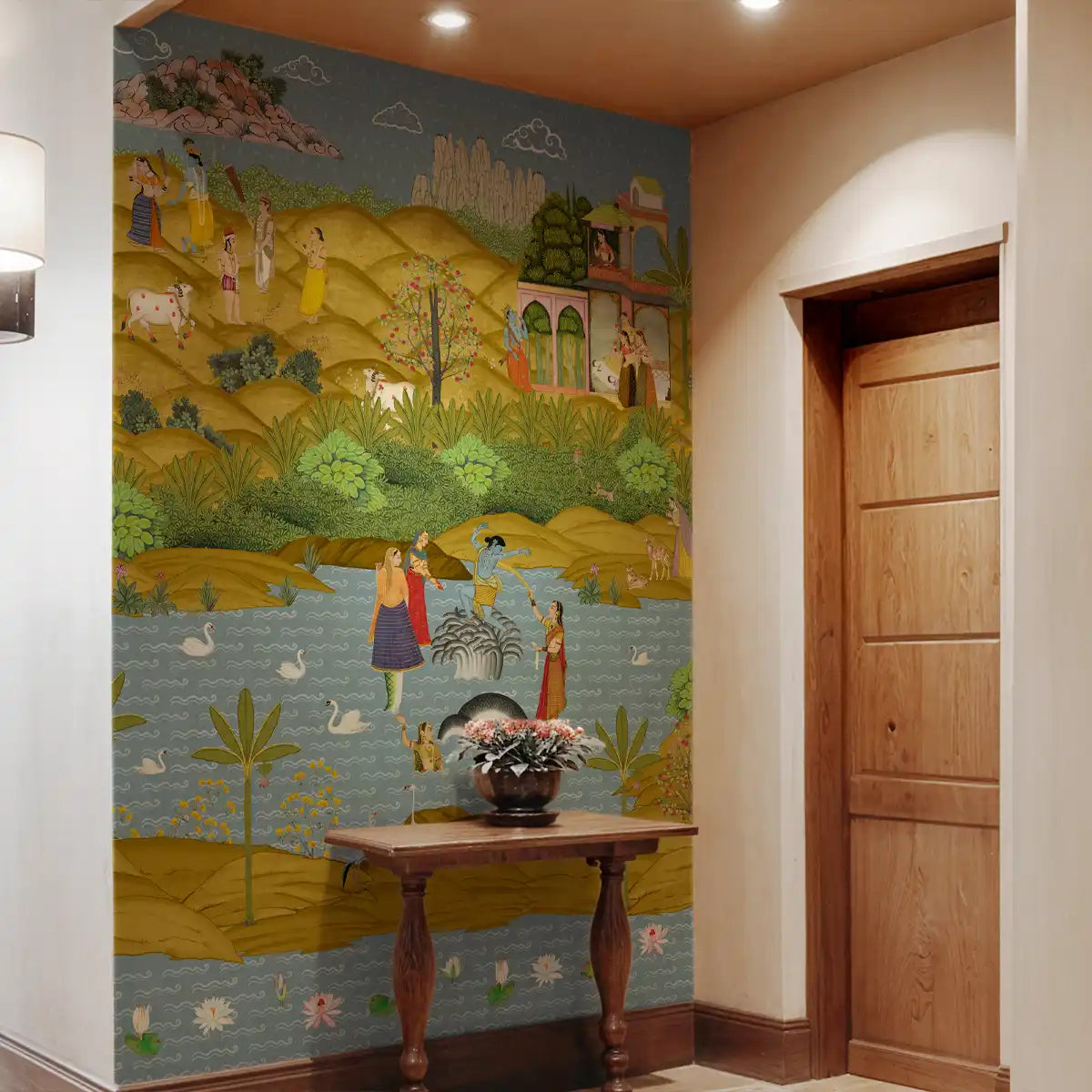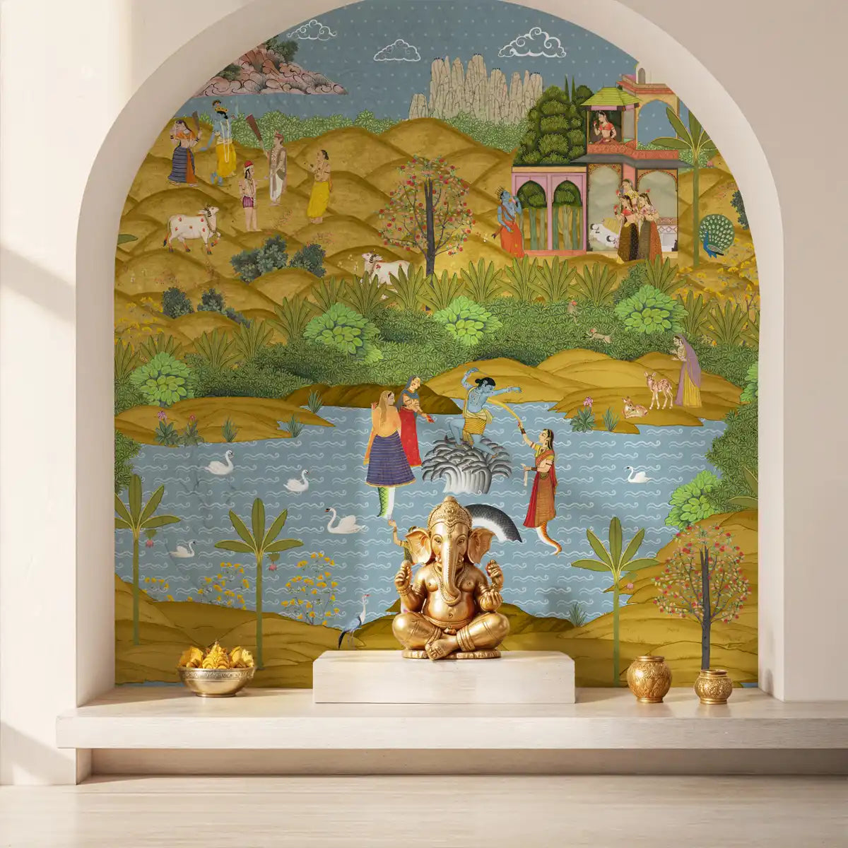 Krishna Leela Wallpaper for Pooja and Living Rooms