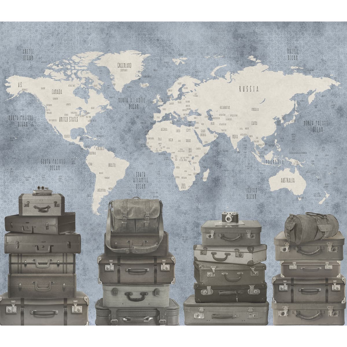 Blue Travel Theme World Map Wallpaper for Walls | Custom made | Clear & vibrant prints | Easy to maintain | Life n Colors | Made in India