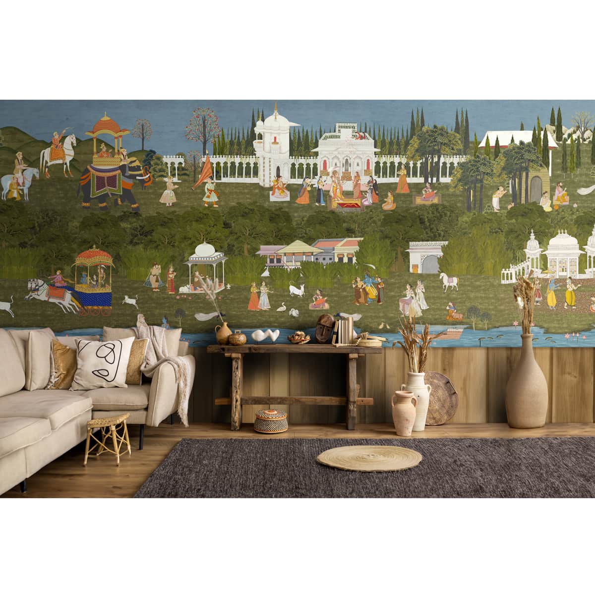 Krishna Leela-Tapete in der Suneherii-Kollektion