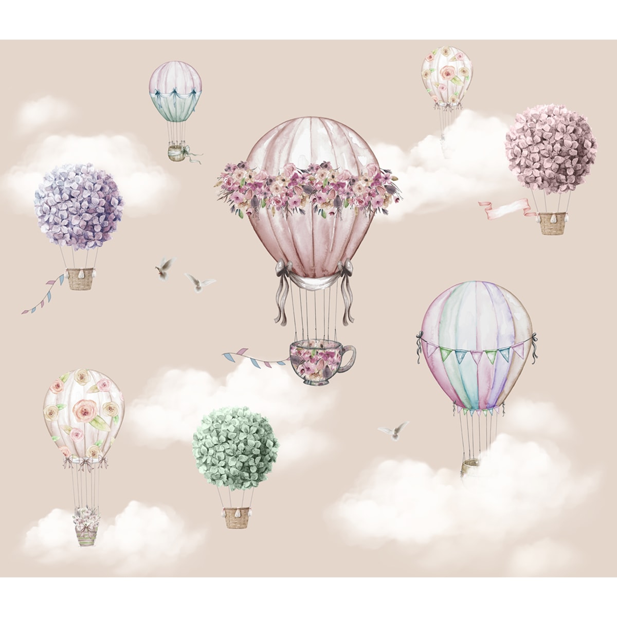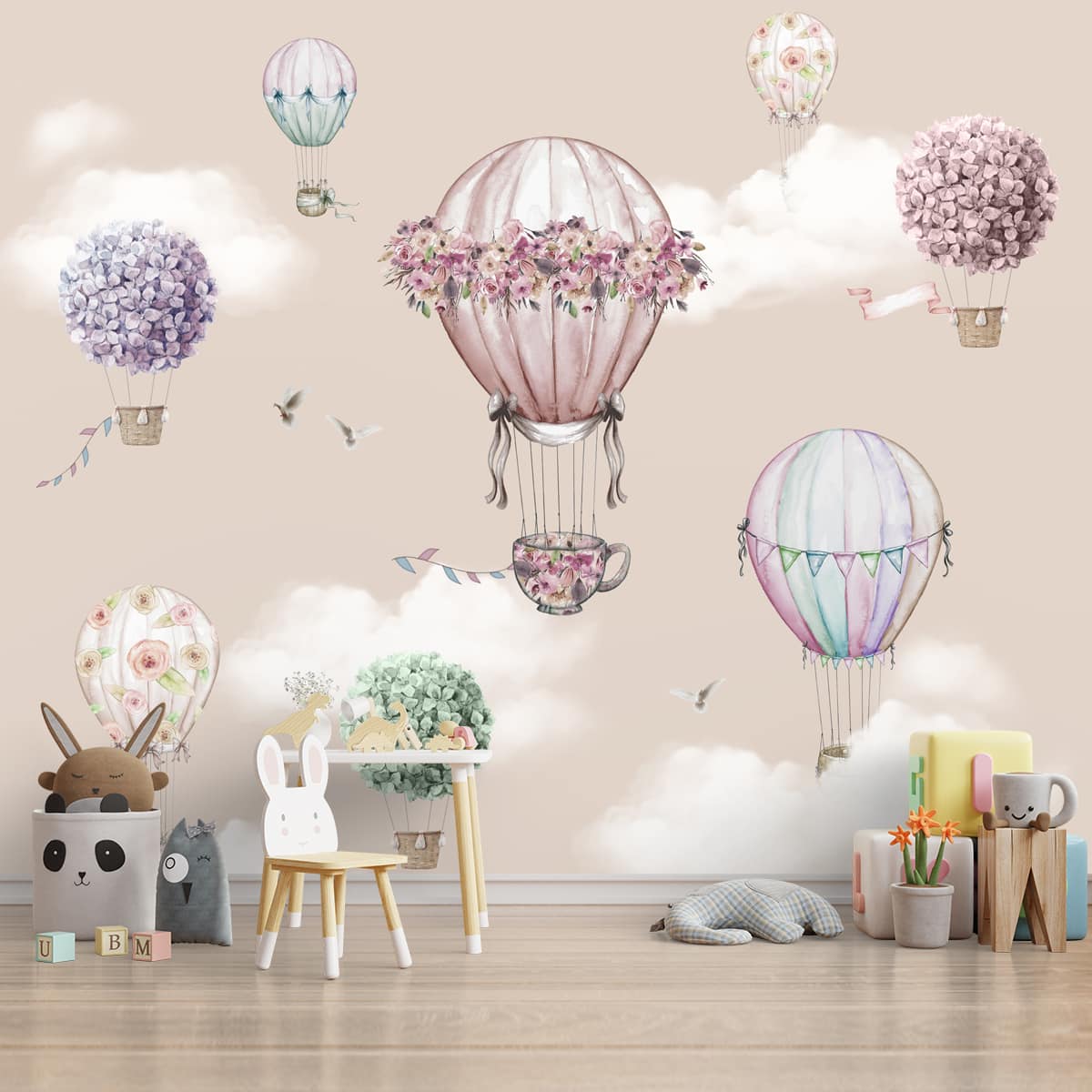 Wunderschöne Blumendekoration Heißluftballons Tapete für junge Kinderzimmer, individuell gestaltet
