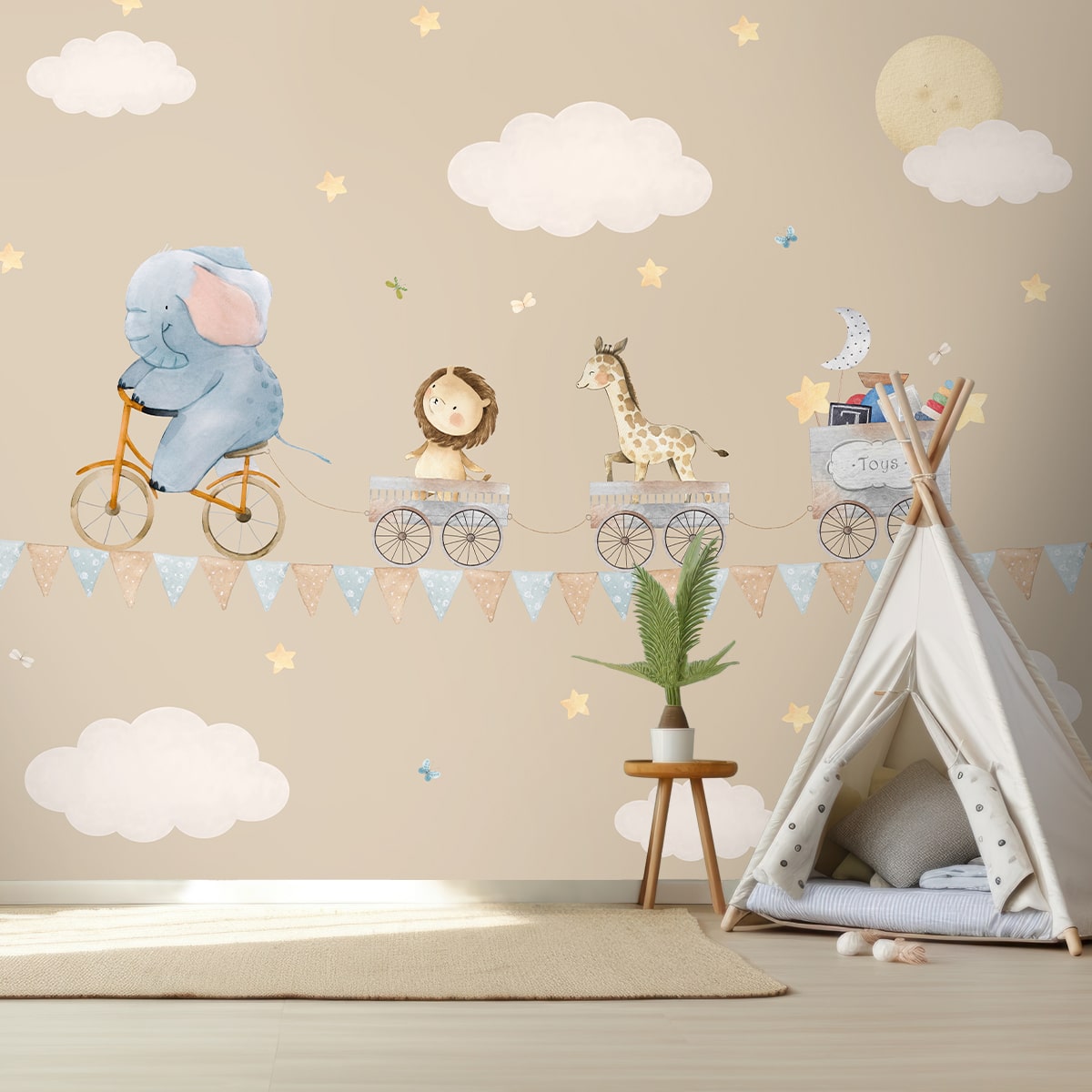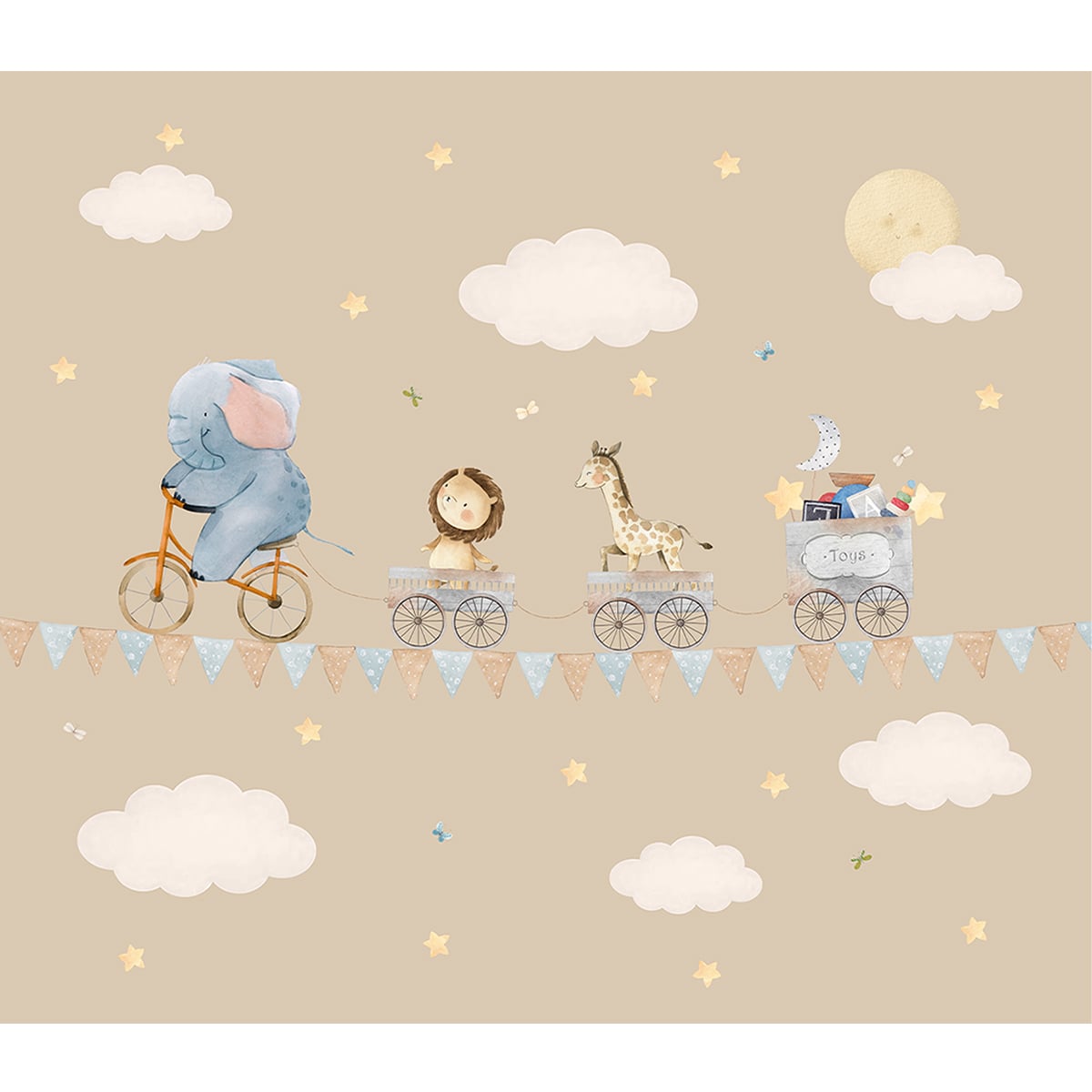 Animals On Ride: Tapete fürs Kinderzimmer, Beige | Maßanfertigung | Klare und lebendige Drucke | Pflegeleicht | Life n Colors | Hergestellt in Indien