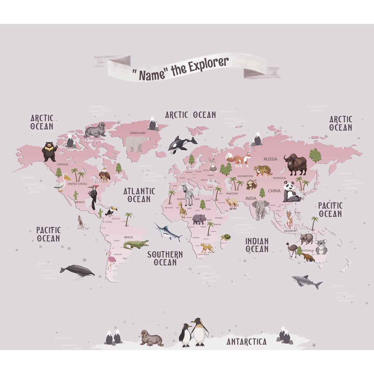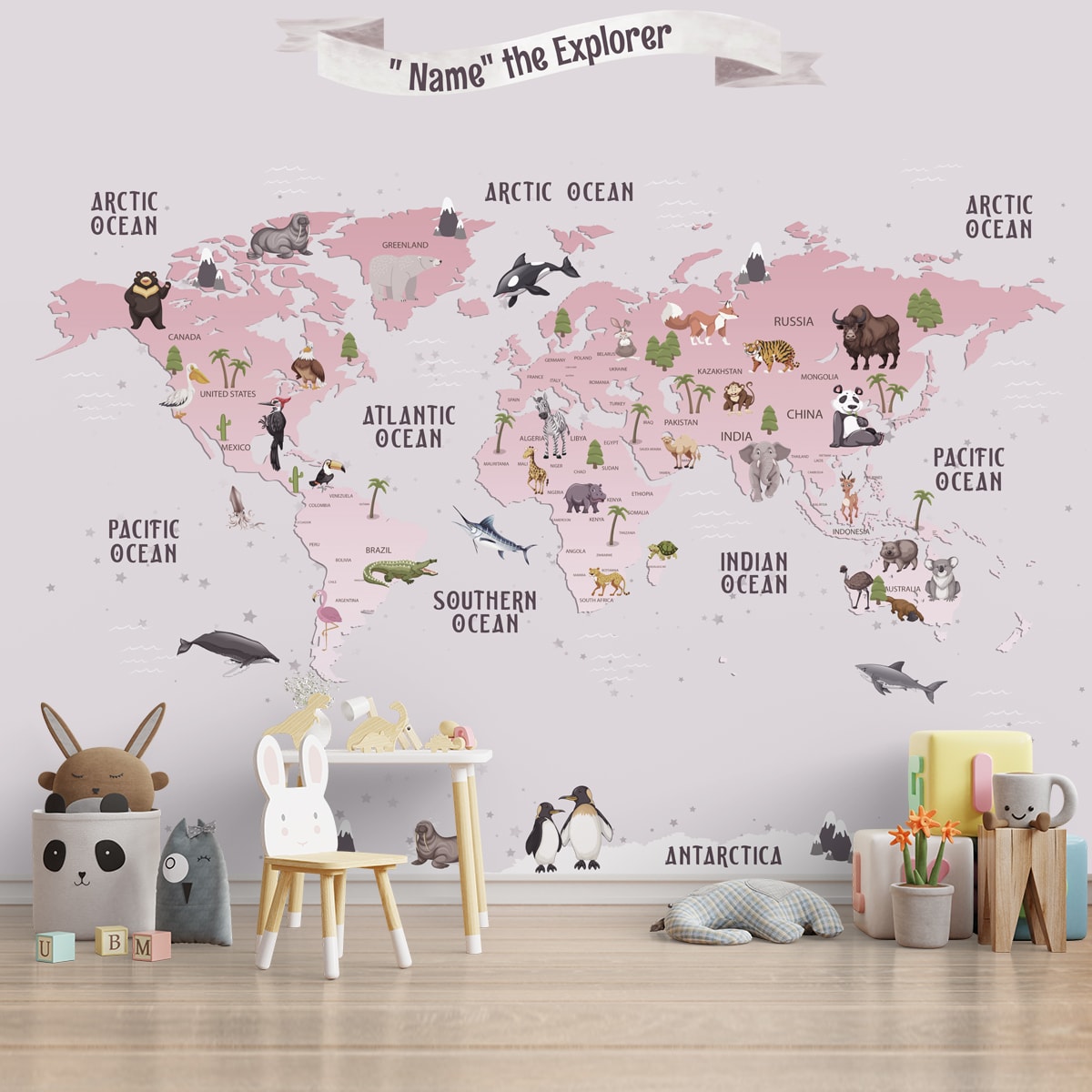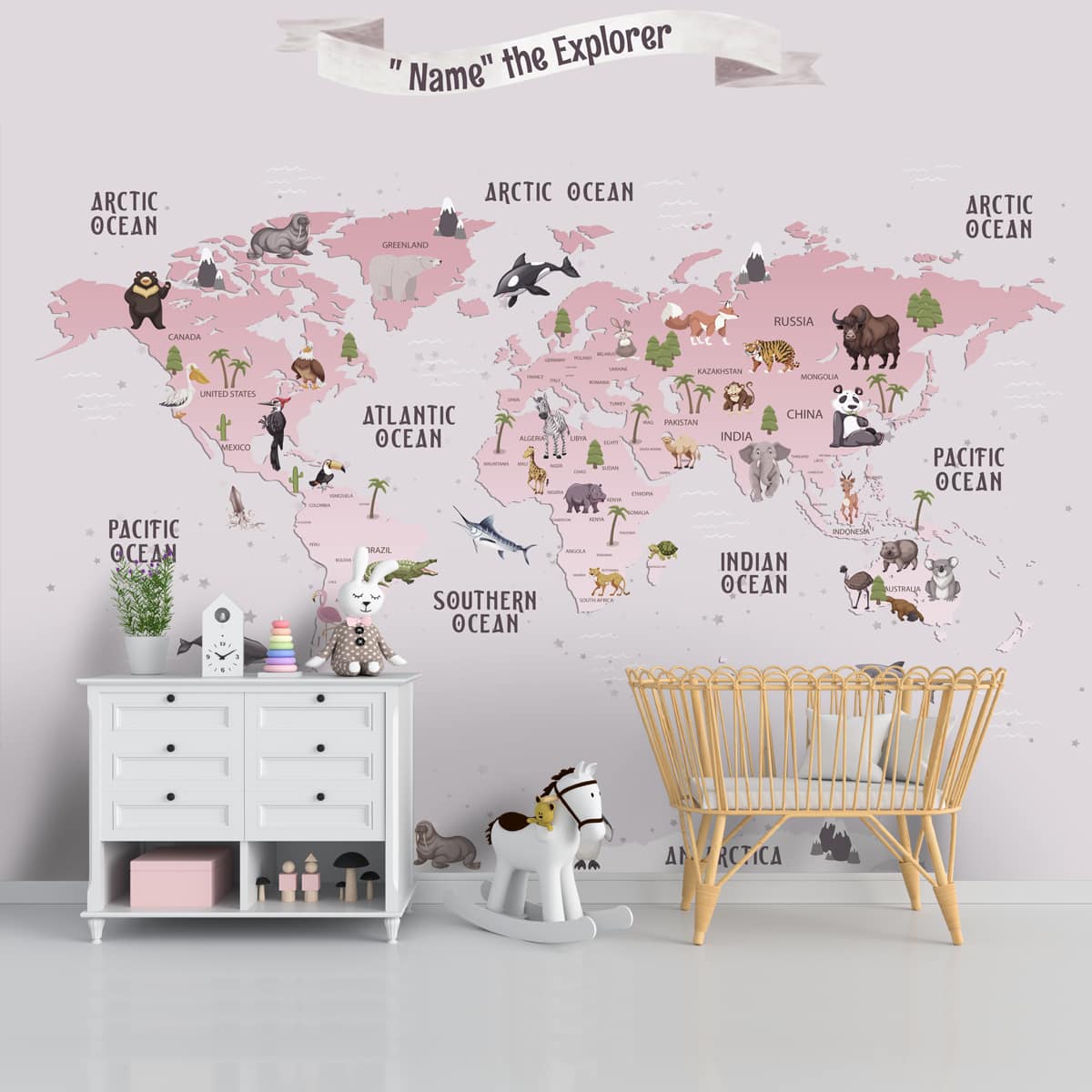 Personalisierte 3D-Rosa-Weltkarte für Wände, Mädchenzimmer
