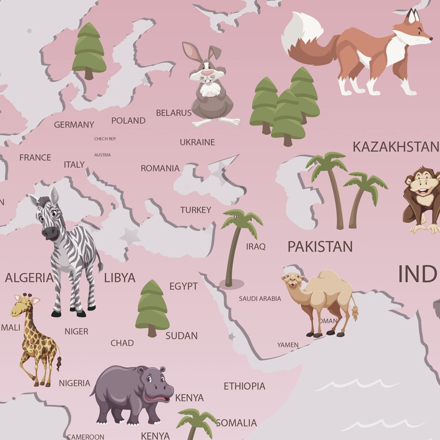 Personalisierte 3D-Rosa-Weltkarte für Wände, Mädchenzimmer | Maßgeschneidert | Klare und lebendige Drucke | Pflegeleicht | Leben und Farben | Hergestellt in Indien
