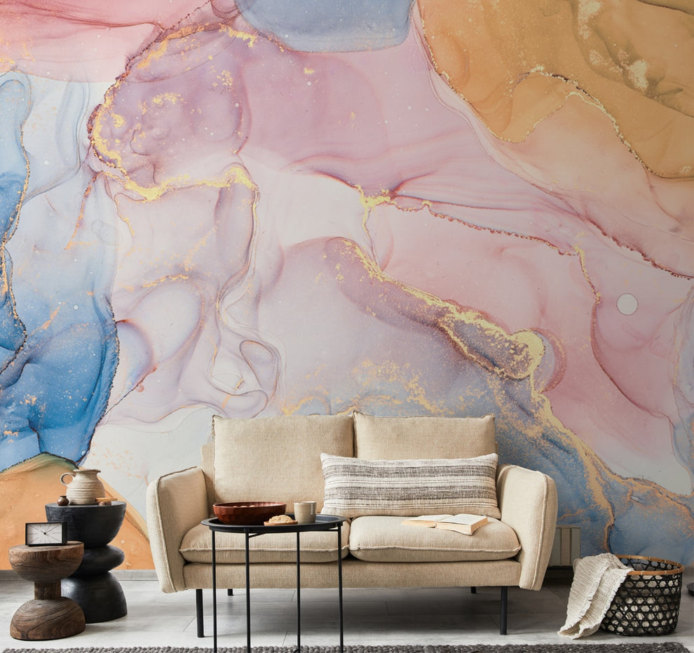 Abstrakte natürliche Aquarellspritzer, Tapete für Wände | Nachhaltige Materialien | Pflegeleicht | Leben und Farben | Hergestellt in Indien