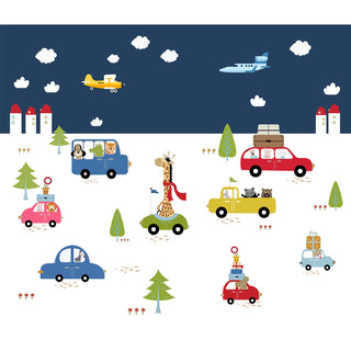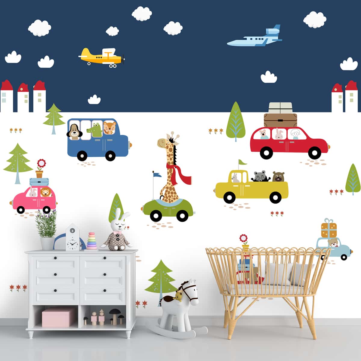 Tiere machen ein Picknick, Kinderzimmer-Tapete | Maßgeschneidert | Klare und lebendige Drucke | Pflegeleicht | Leben und Farben | Hergestellt in Indien