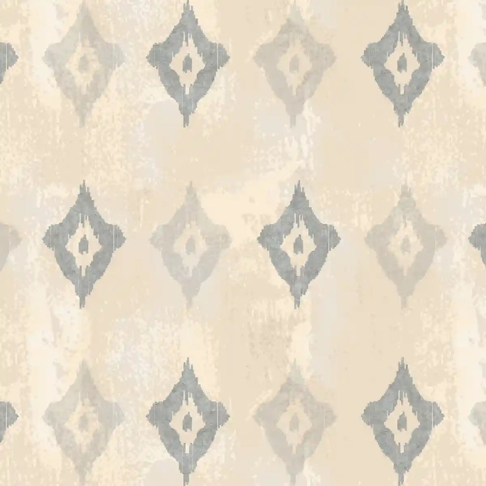 Beigefarbene indische Schlafzimmertapete im Ikkat-Design