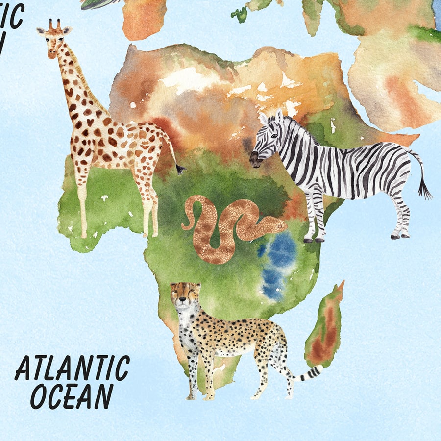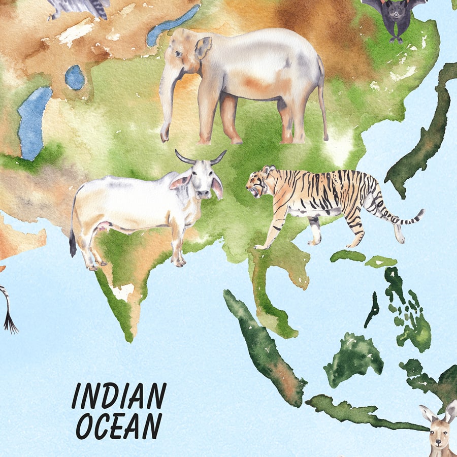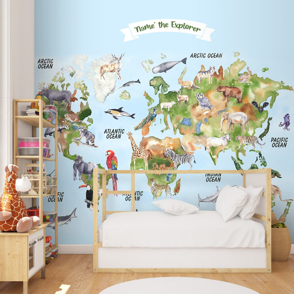 • Personalisierte bunte Weltkarten-Tapete für Kinderzimmerwände | Maßgeschneidert | Klare und lebendige Drucke | Pflegeleicht | Leben und Farben | Hergestellt in Indien