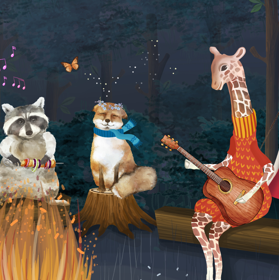 Wecken Sie mit unserer Tapete „Lagerfeuer-Dschungeltiere“ für Kleinkinder die Neugier. Mit bezaubernden Tiermotiven rund um ein gemütliches Lagerfeuer schafft diese Tapete eine warme, einladende Atmosphäre in Kinderzimmern, Spielzimmern und Schulen, die die Kleinen begeistert.