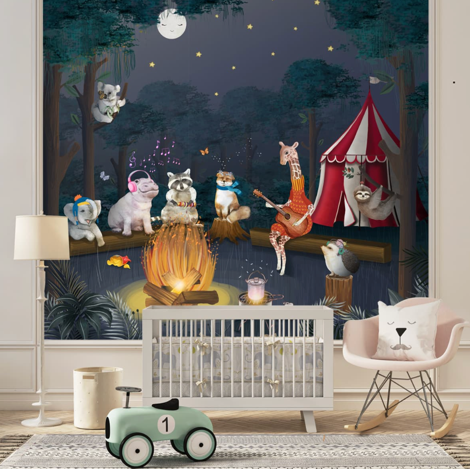 Bonfire Jungle Animals Wallpaper für Kleinkinder, Kinderzimmer