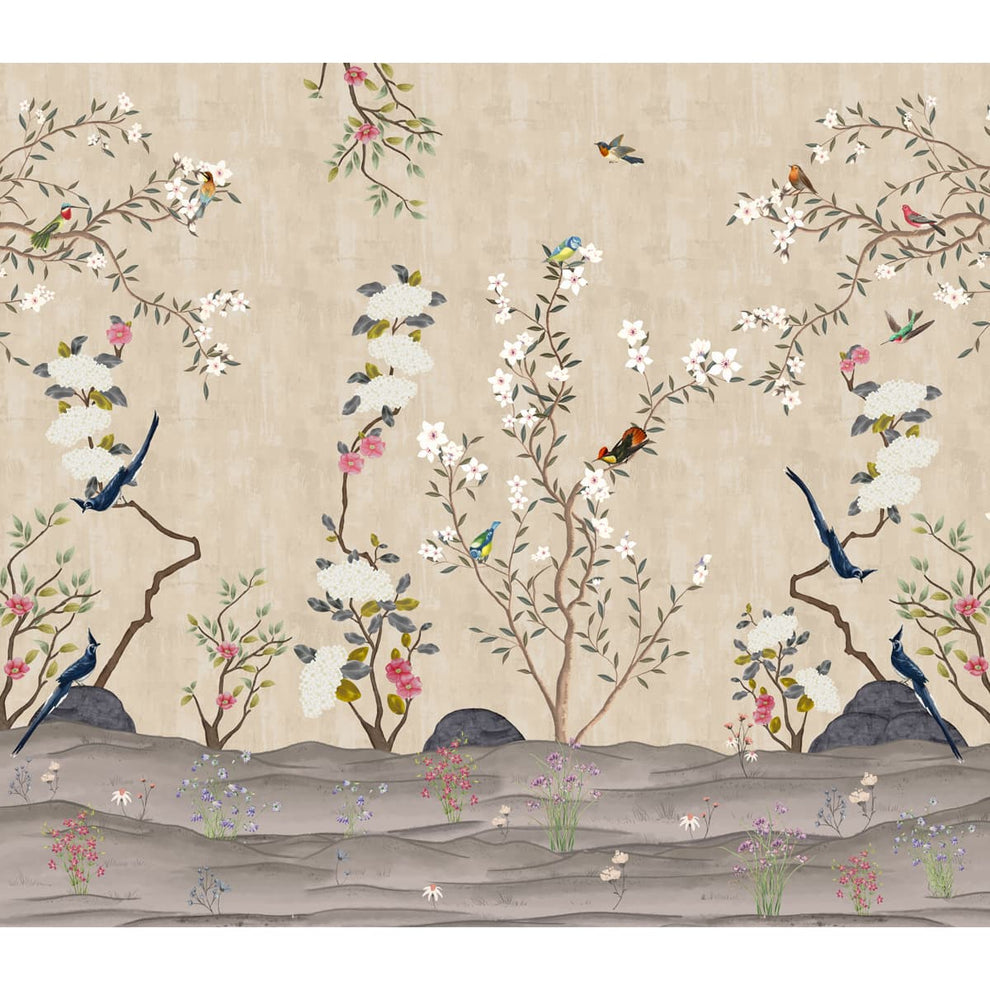 Wandtapete mit Chinoiserie-Blumenmotiv | Nachhaltige Materialien | Pflegeleicht | Hergestellt in Indien