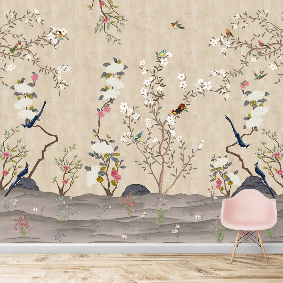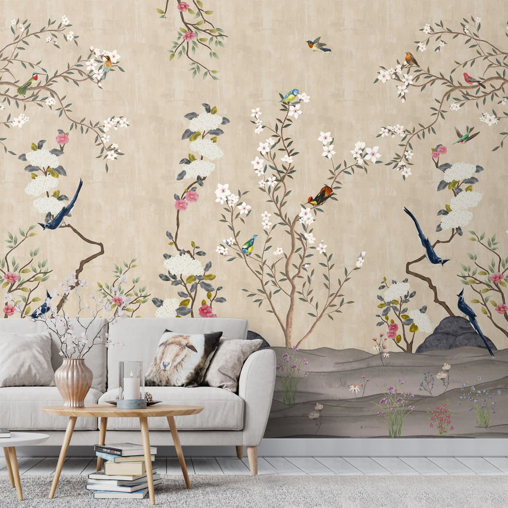 Tapete mit Chinoiserie-Blumenmotiv für Wände, individuell gestaltet
