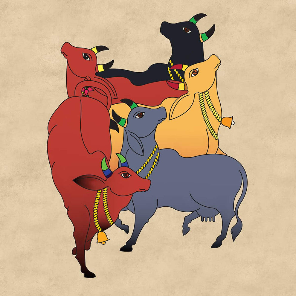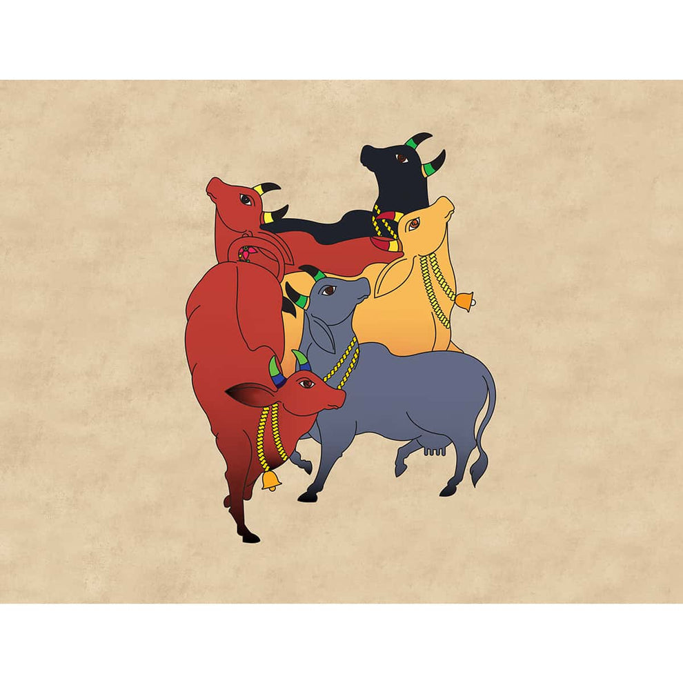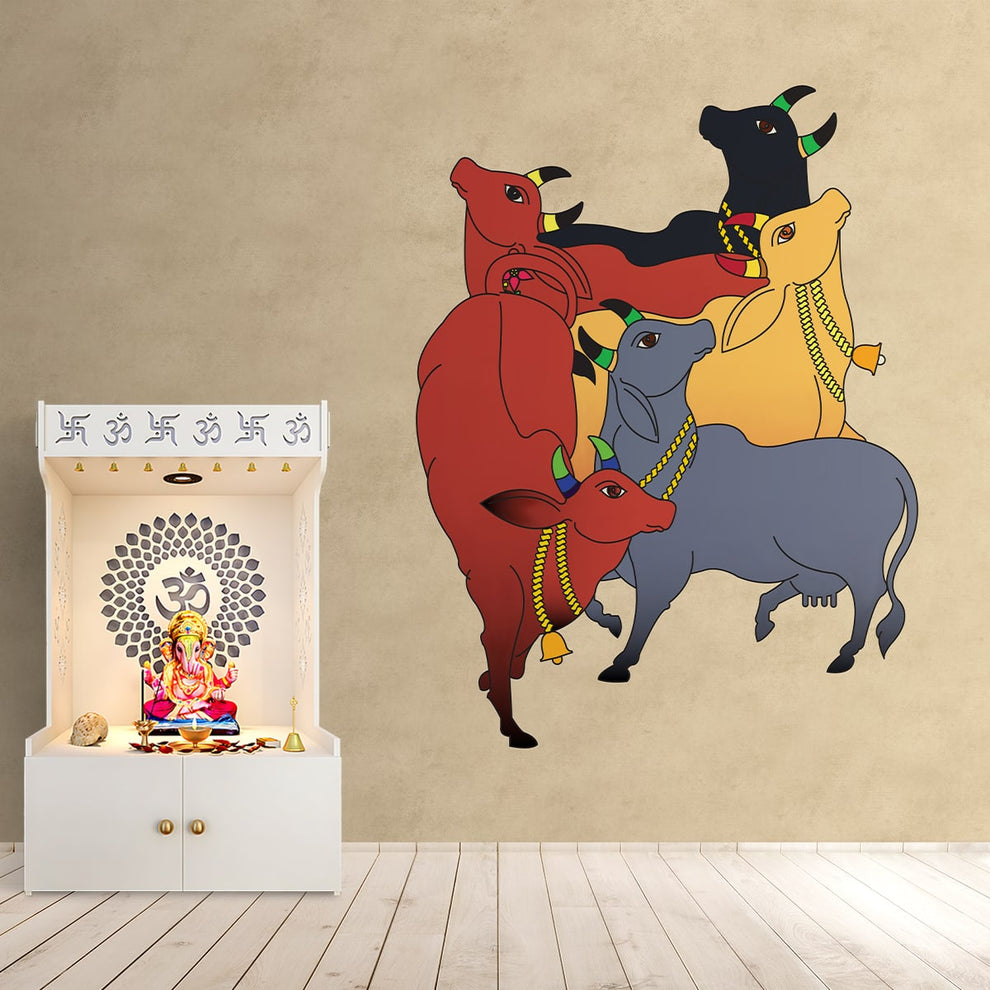 Bunte Kühe Pichwai Tapete für Pooja und Salons