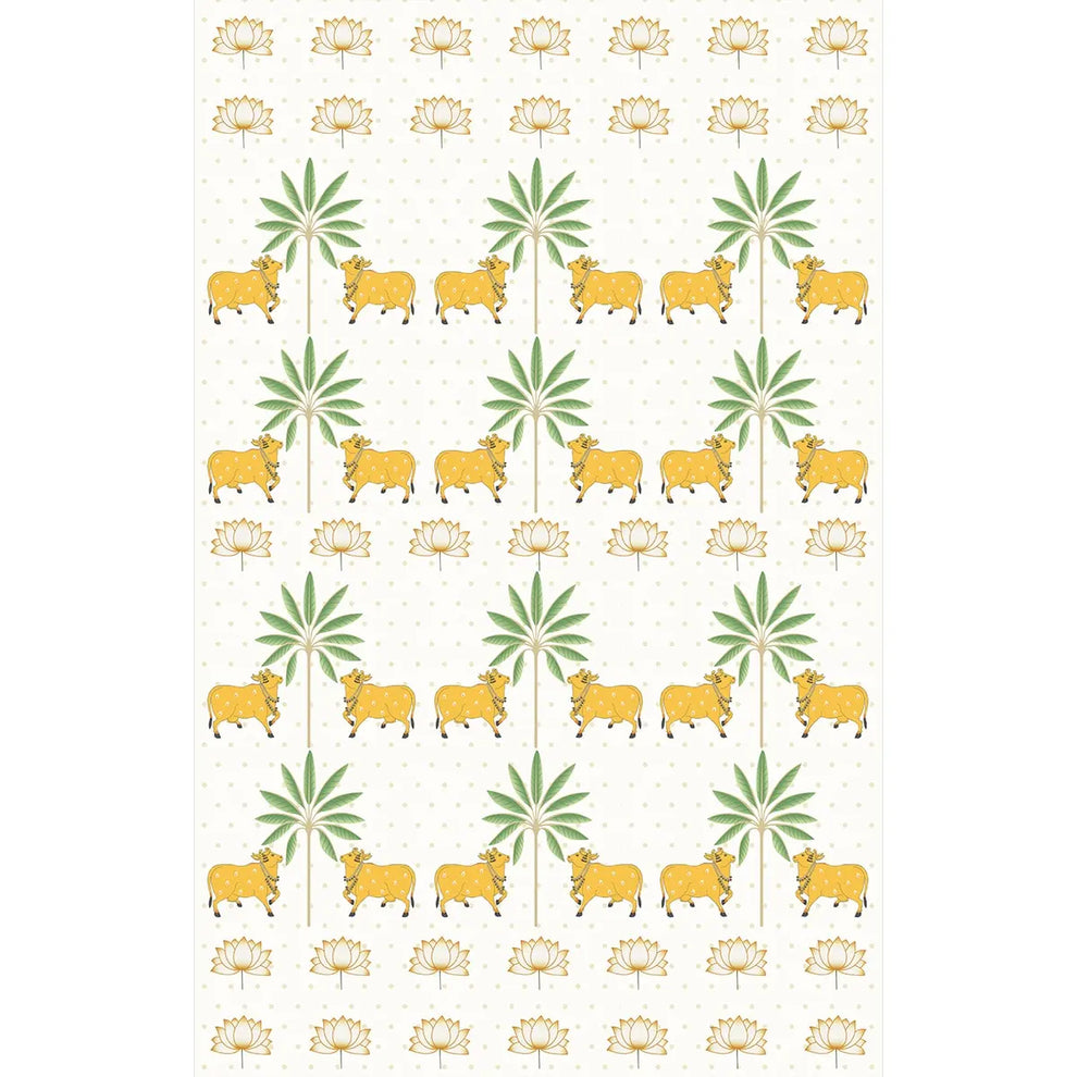 Gelbe Tapete im Pichwai-Stil für Lobby- und Tempelwände
