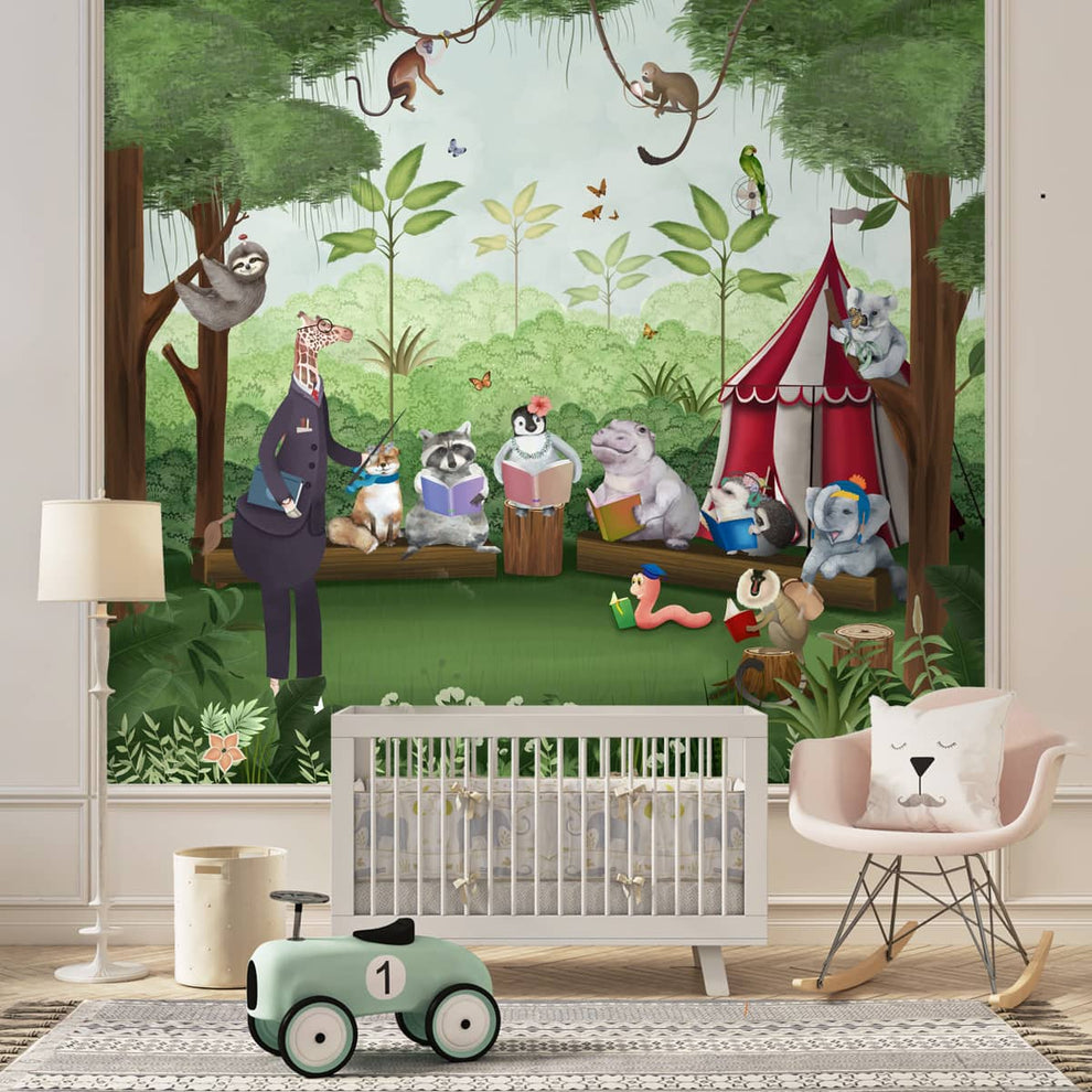 Dschungel-Klassenzimmer mit Tiertapete, individuell gestaltet