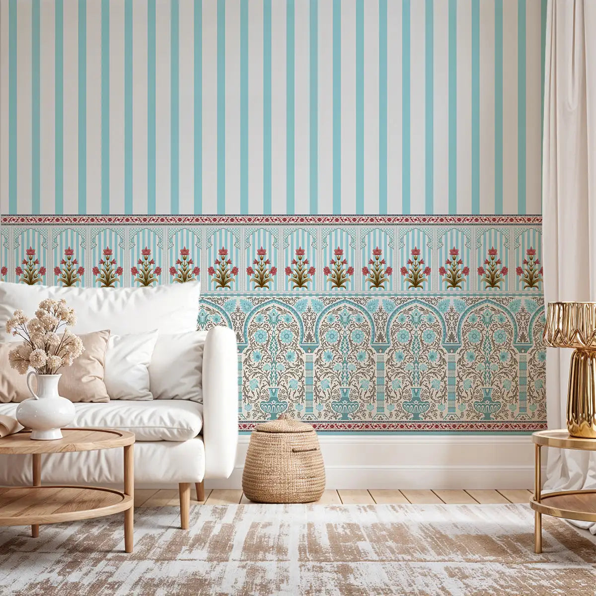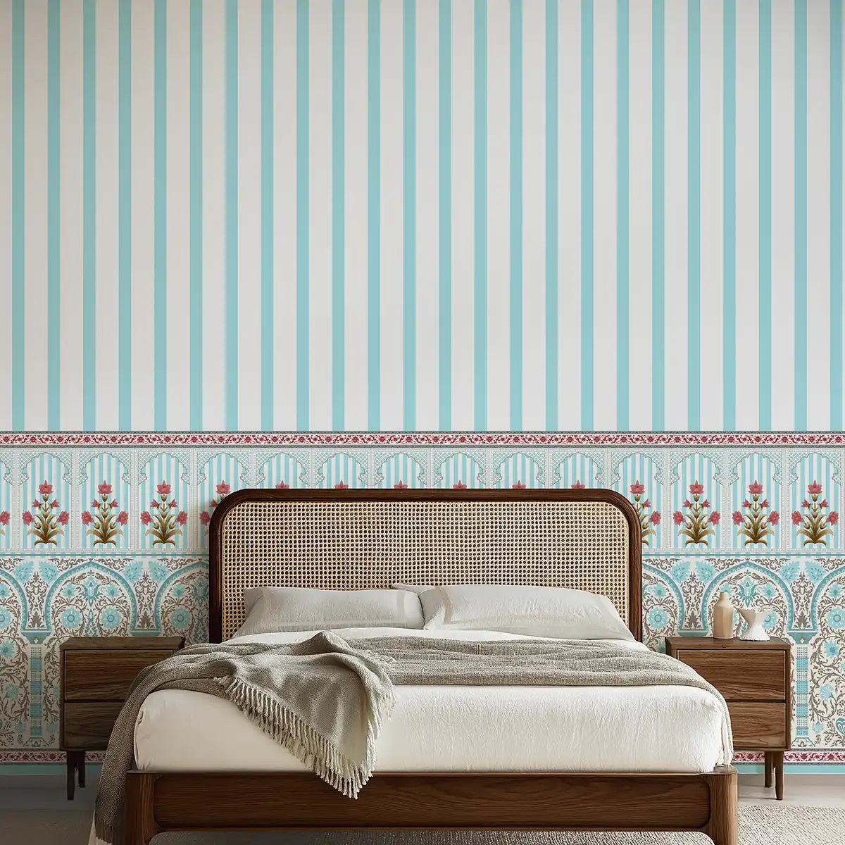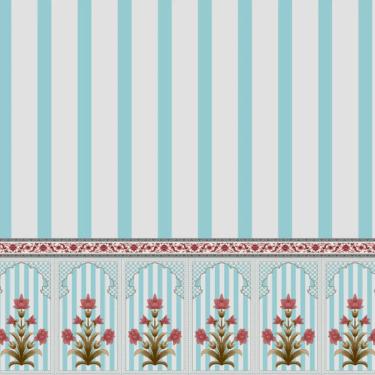Kusum: Indische florale Jharokha- und Streifen-Designtapete