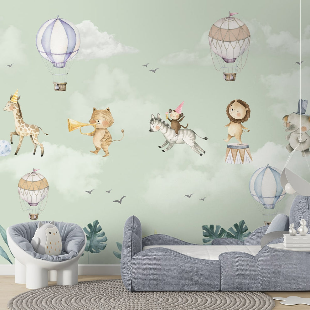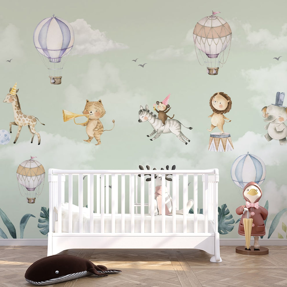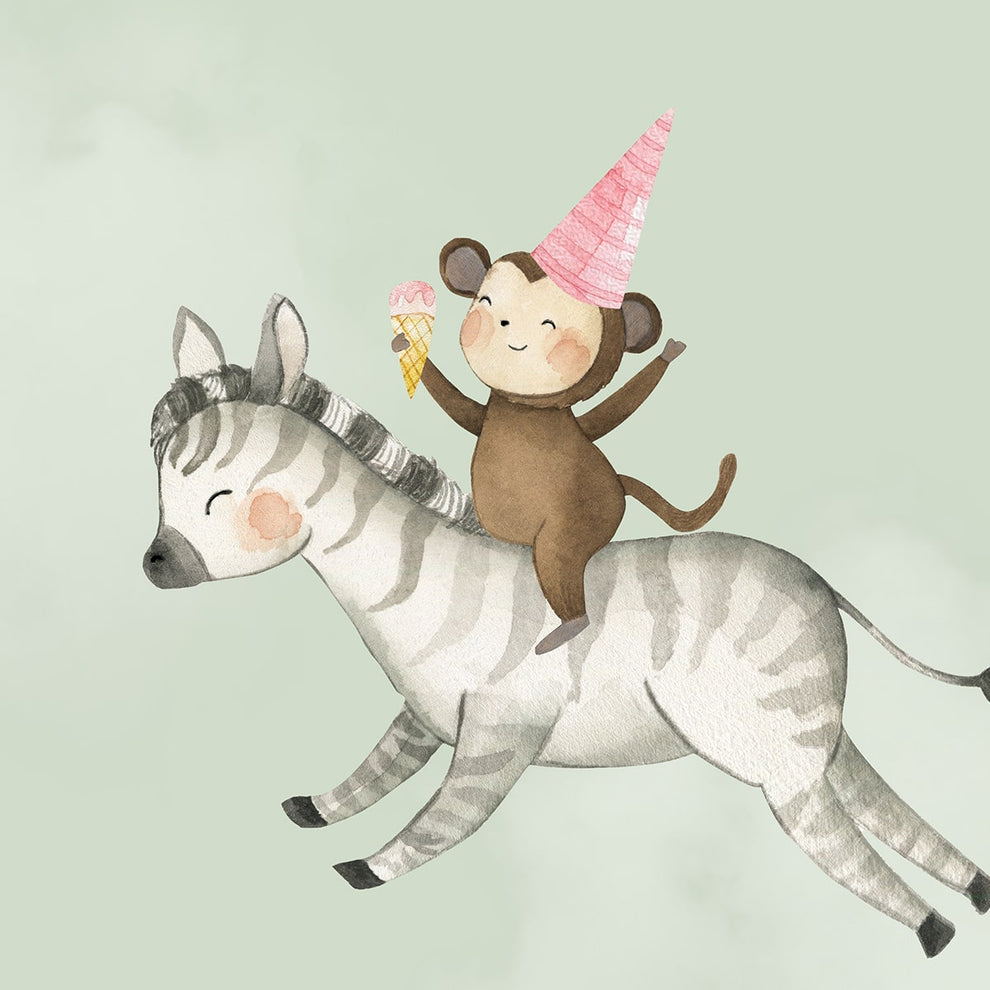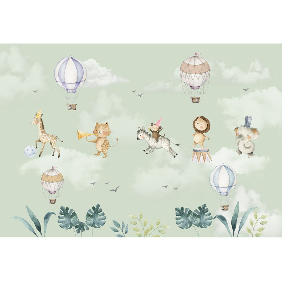 Marschierende Musikkapelle von Dschungeltieren, Tapete für Kinderzimmer, individuell, Mintgrün | Maßgeschneidert | Klare und lebendige Drucke | Pflegeleicht | Leben und Farben | Hergestellt in Indien