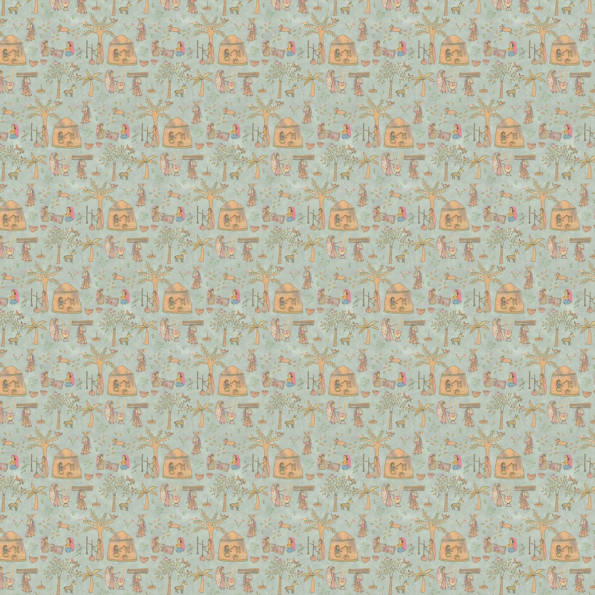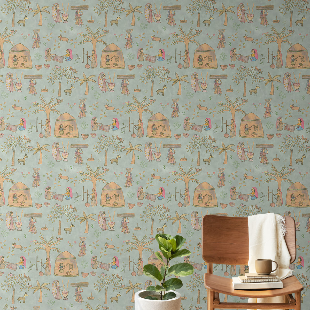 Mithila Indian Sujani Art Salbei Tapete für die Wand