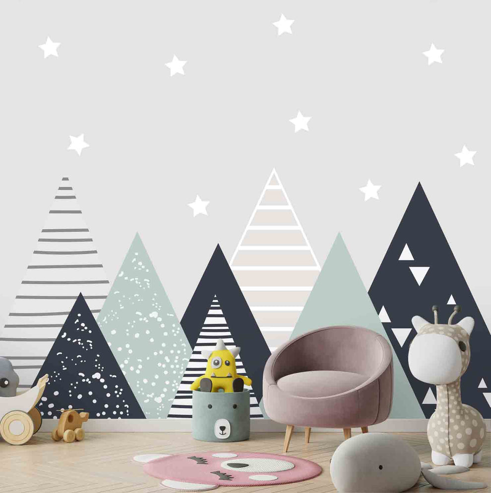 Berge-Thema für Kinderzimmer, solides Design, geometrisches Muster