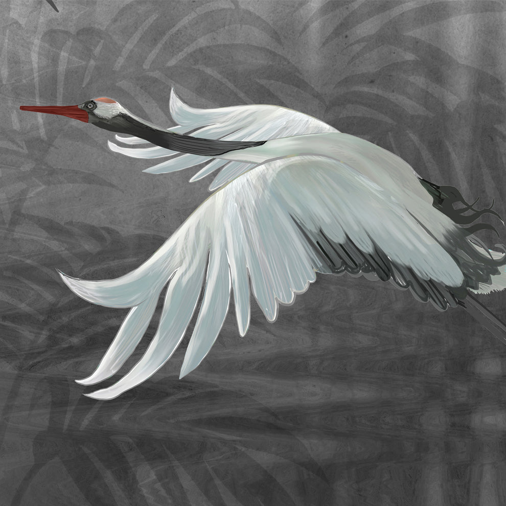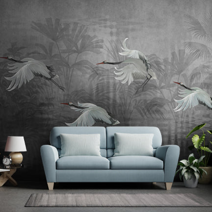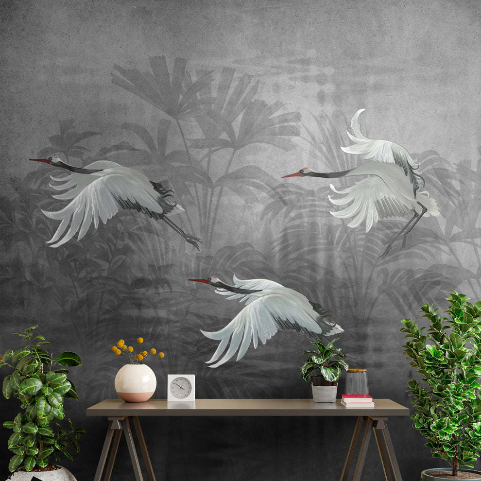 Die Tapete „Beautiful Cranes“ von Musafir ist eine elegante und luxuriöse Tapetenkollektion, die von der Schönheit der Natur inspiriert ist. Die Kollektion besteht aus wunderschönen Kranich-Designs mit edlem Hintergrund. Diese Kollektion verleiht Ihrem Zuhause Eleganz. Graue Farben