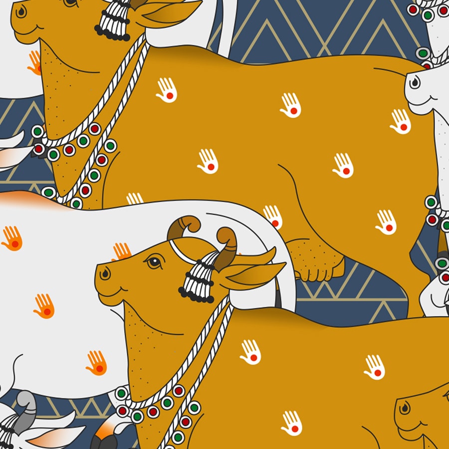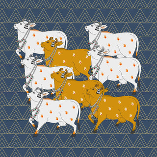 Pichwai Cow Design Blaue Tapete für Wände, individuell gestaltet | Nachhaltige Materialien | Pflegeleicht | Hergestellt in Indien