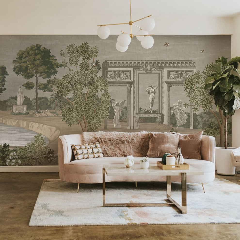 Werten Sie Ihre Einrichtung mit unserer römisch inspirierten Vintage-Gartentapete auf, die filigrane Architekturmotive und üppige Gartenszenen präsentiert. Tauchen Sie Ihren Raum in zeitlose Eleganz und klassischen Charme.
