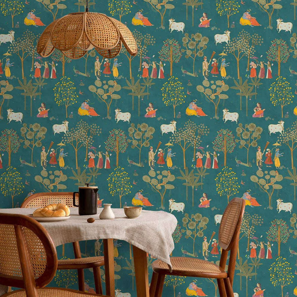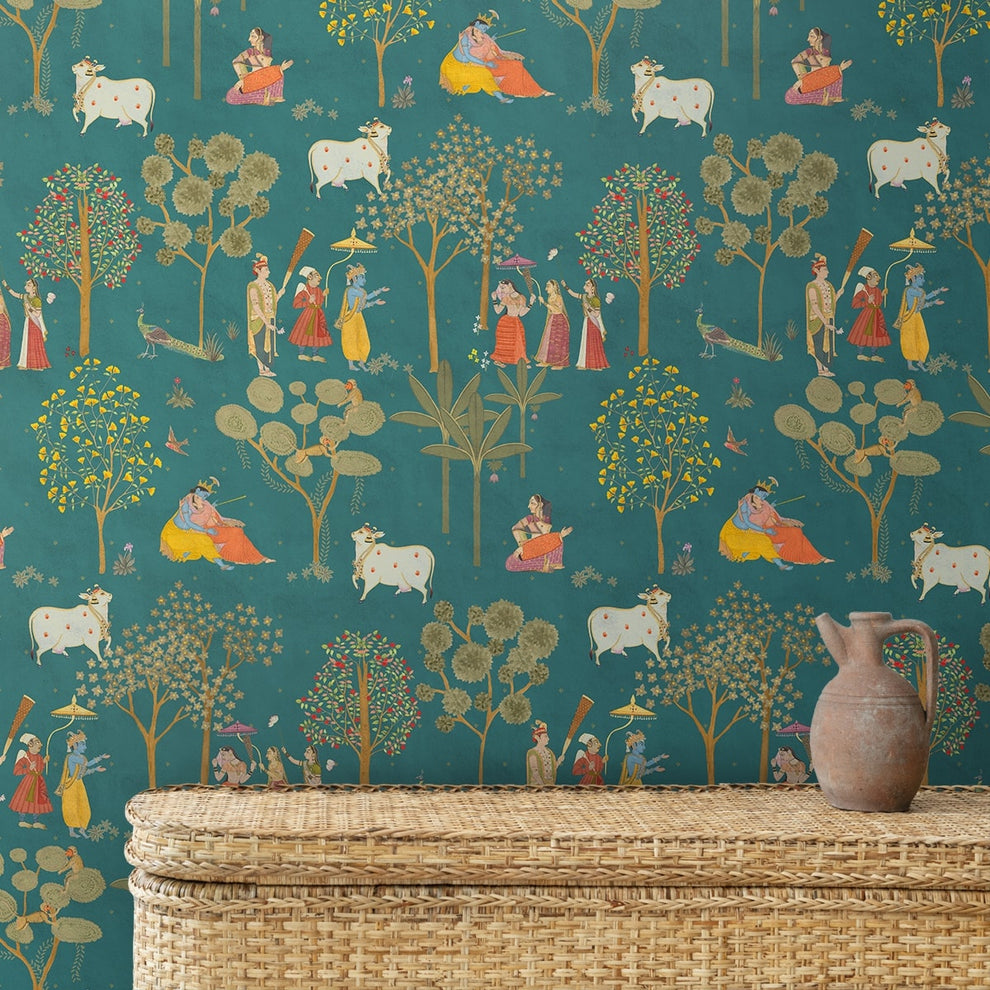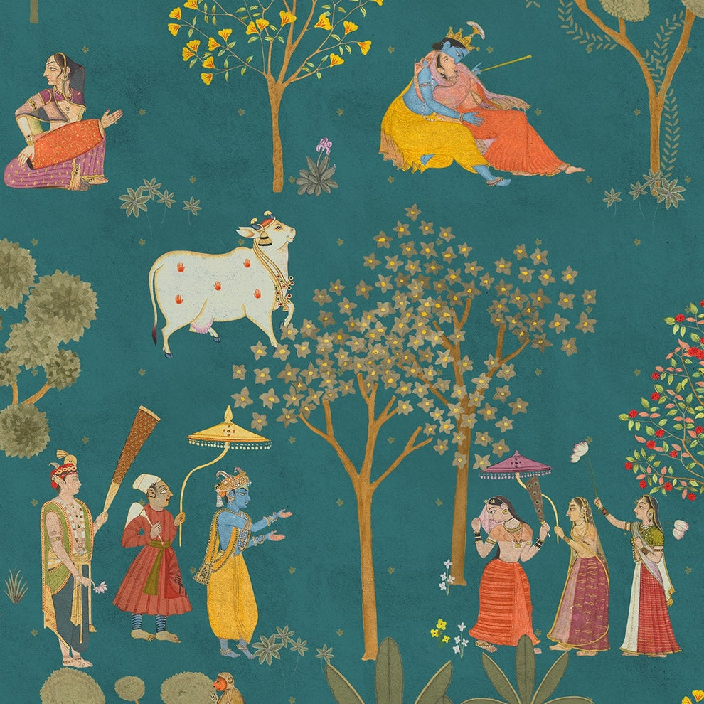 Krishna Leela-Tapete in der Suneherii-Kollektion