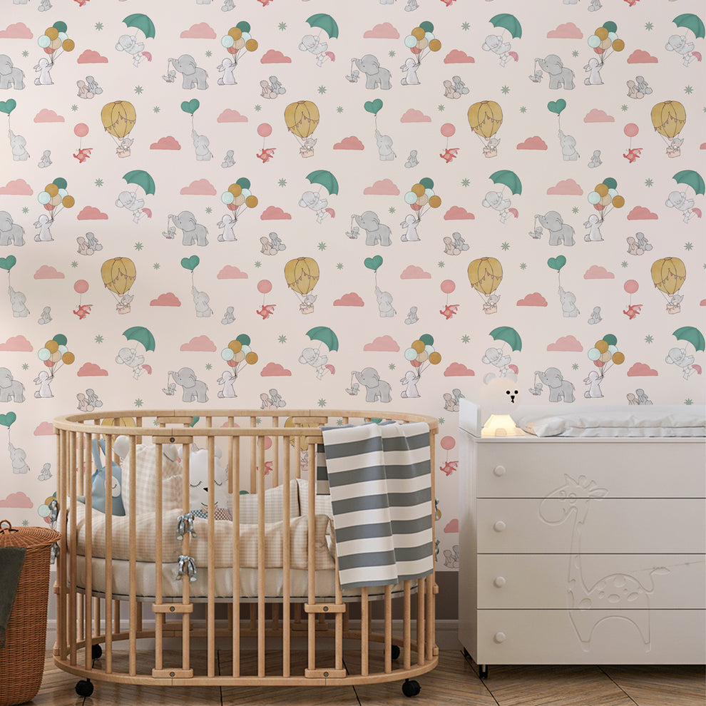 Tiny Trunks and Floppy Ears, Süße Tapete für Zimmer, Blush