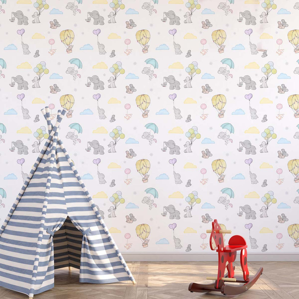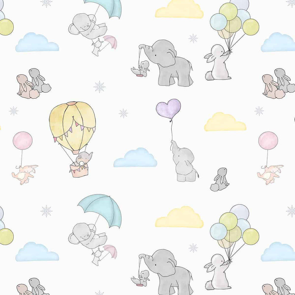 Winzige Rüssel und Schlappohren, süße Tapete für Zimmer, mehrfarbig