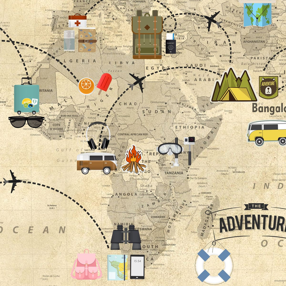 Weltkarte zum Thema Reisen für Kinderzimmer