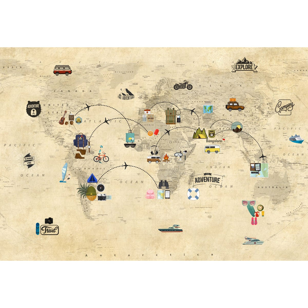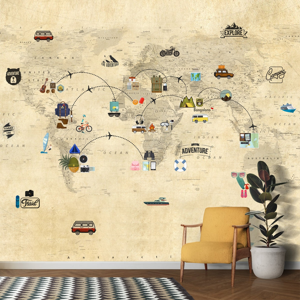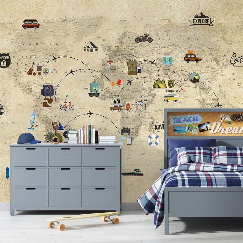 Weltkarte zum Thema Reisen für Kinderzimmer | Maßgeschneidert | Klare und lebendige Drucke | Pflegeleicht | Leben und Farben | Hergestellt in Indien