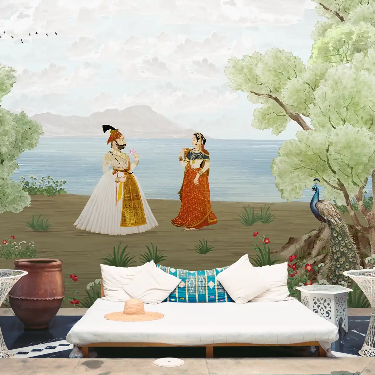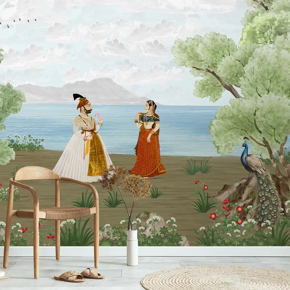 Conception de papier peint indien sur le thème moghol | Fait sur mesure | Impressions claires et vibrantes | Facile à entretenir | Couleurs de vie | Fabriqué en Inde