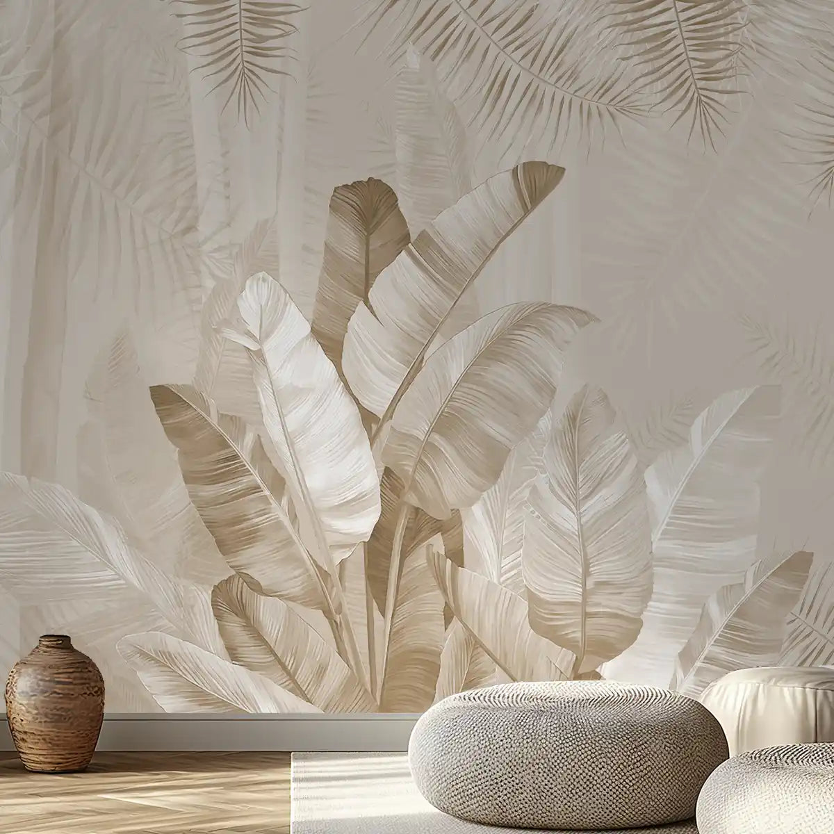Pallav, un papier peint tropical aux couleurs rose champagne | Fait sur mesure | Impressions claires et vibrantes | Facile à entretenir | Couleurs de vie | Fabriqué en Inde